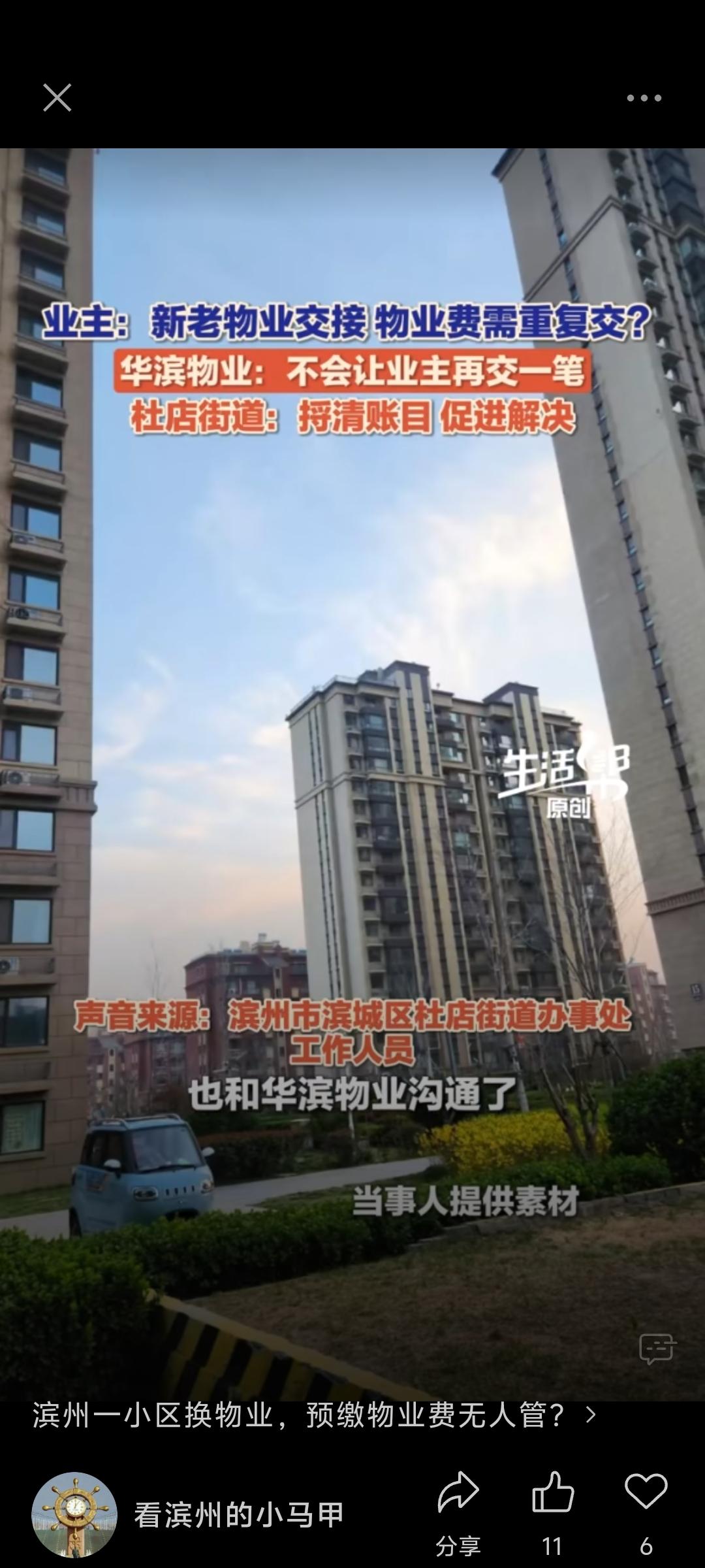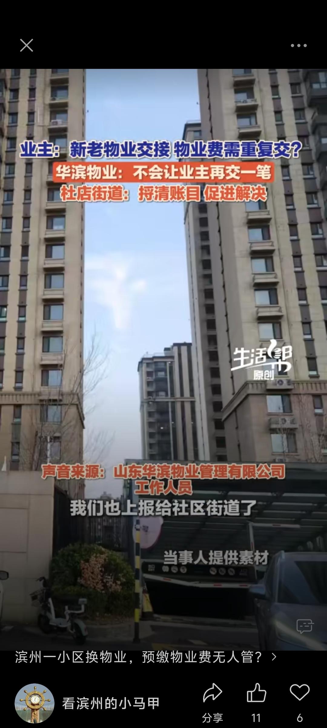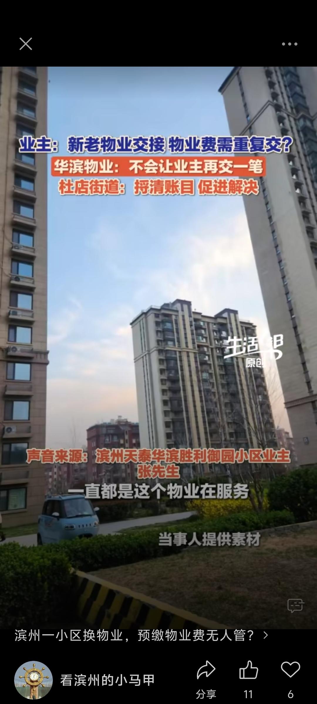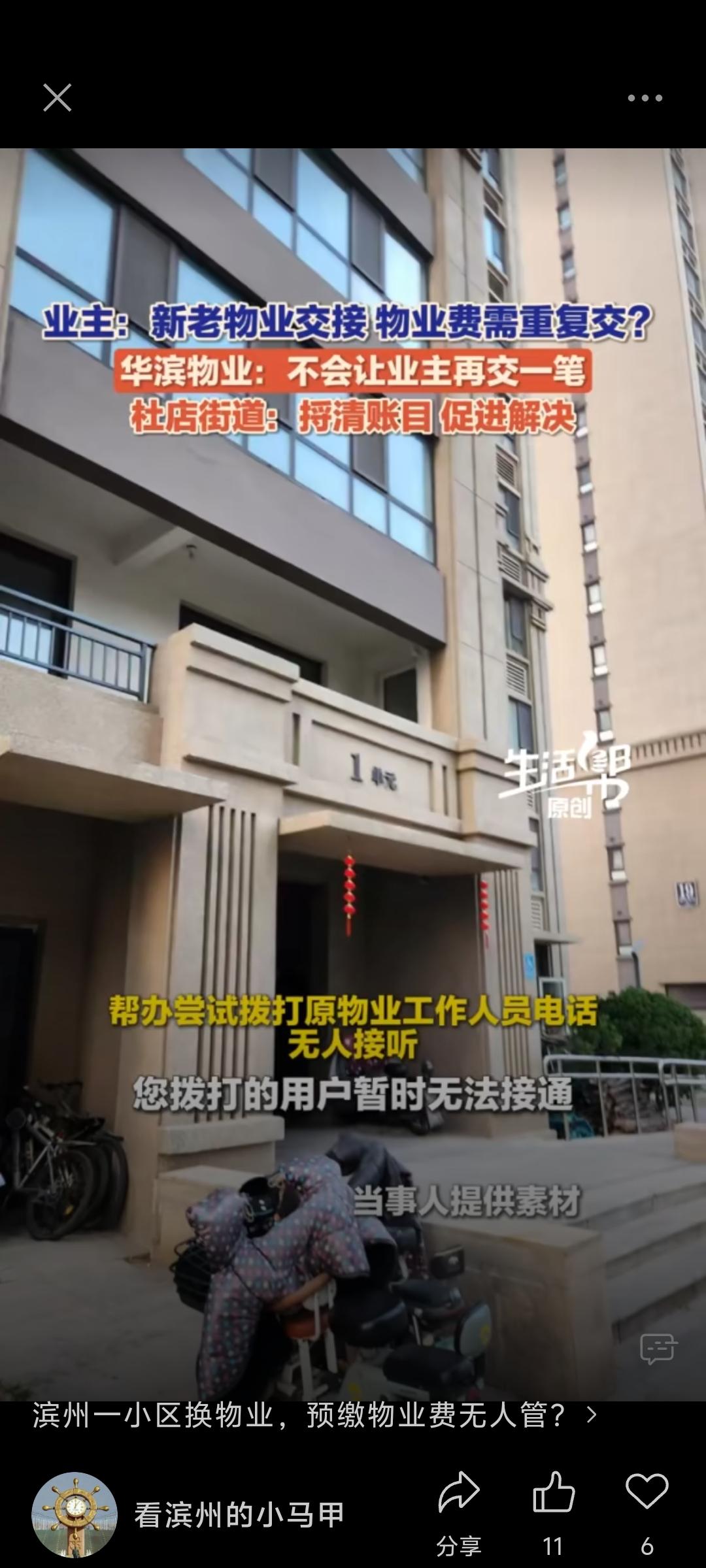 山东滨州一小区: 新老物业交接“烂摊子”:预缴物业费要不回,业主被重复催缴 近日,山东滨州杜店街道天泰华滨胜利御园小区业主反映“新老物业交接,导致物业费重复交?”的问题。 据了解,十余户业主提前交了2026年全年物业费,但现在老物业失联、新物业不认账还催缴,业主深陷困境,如何摆脱新老物业推诿?!同时,业主质疑:交接为何不捋清账目?现物业表示:此事已上报社区街道,工作人员称天泰物业因经营不善撤场,并承诺:无论预缴费用能否追回,都不会让业主承担损失。 《民法典》明确:物业交接不清,后果不得由业主承担。 物业是服务者,不是“甩锅者”。规范交接、厘清账目、保护业主权益,是行业底线。天泰物业的“失联式撤场”、新物业的“推诿式催缴”,既伤民心,也损行业信誉。唯有严格执法、强化监管、压实企业责任,才能避免类似闹剧重演,让业主住得安心、放心。 来源 综合山东台《生活帮》等