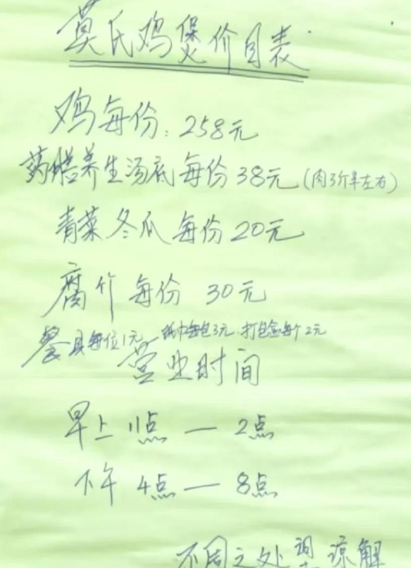 大家想到没有?全网“最不想红”的莫氏鸡煲老板累得摊到地上…… “生活很苦,干活很累,但我一定要坚持,因为我很穷啊!”近日,广东佛山顺德莫氏鸡煲火得不得了! 佛山市莫氏鸡终于火了,本来大爷一天干几桌,还能泡泡茶,躺躺椅上翘个二郎腿,现在杀鸡杀到随地躺…… 广东的家鸡都要30左右一斤了,在那里35一斤煮熟还搭配中药配方,还觉得贵,那些说贵的是吃太多的超市鸡了吧。 就这真材实料,还300多一餐,明显就没有多少利润了,好的鸡都要200一只。 加上一些材料,如果去饭店吃,起码要500-800才赚的多,想要升价明显也不可能。 这明显就是有文旅找他谈话了,又是原价,利润又不高,肯定是累死人,不想干。 这种的在广东,大部分都是收收房租,做点小生意给熟人吃,赚个人工费而已,消磨时间。 好消息,老板说鸡还够吃一两个月;坏消息,一两个月后就够呛啦,要吃抓紧!难怪食客如云,候位两三小时依然大呼“值得”! 员工说“我希望一天卖100只鸡”,老板说“我希望一天卖200只鸡”,厨房斩料师傅忙到筋疲力尽。 难怪有些店家自己拍视频天天发天天吹也没人,但是他家食材好 加上稳当的价廉物美食材新鲜,所以不火都不行……