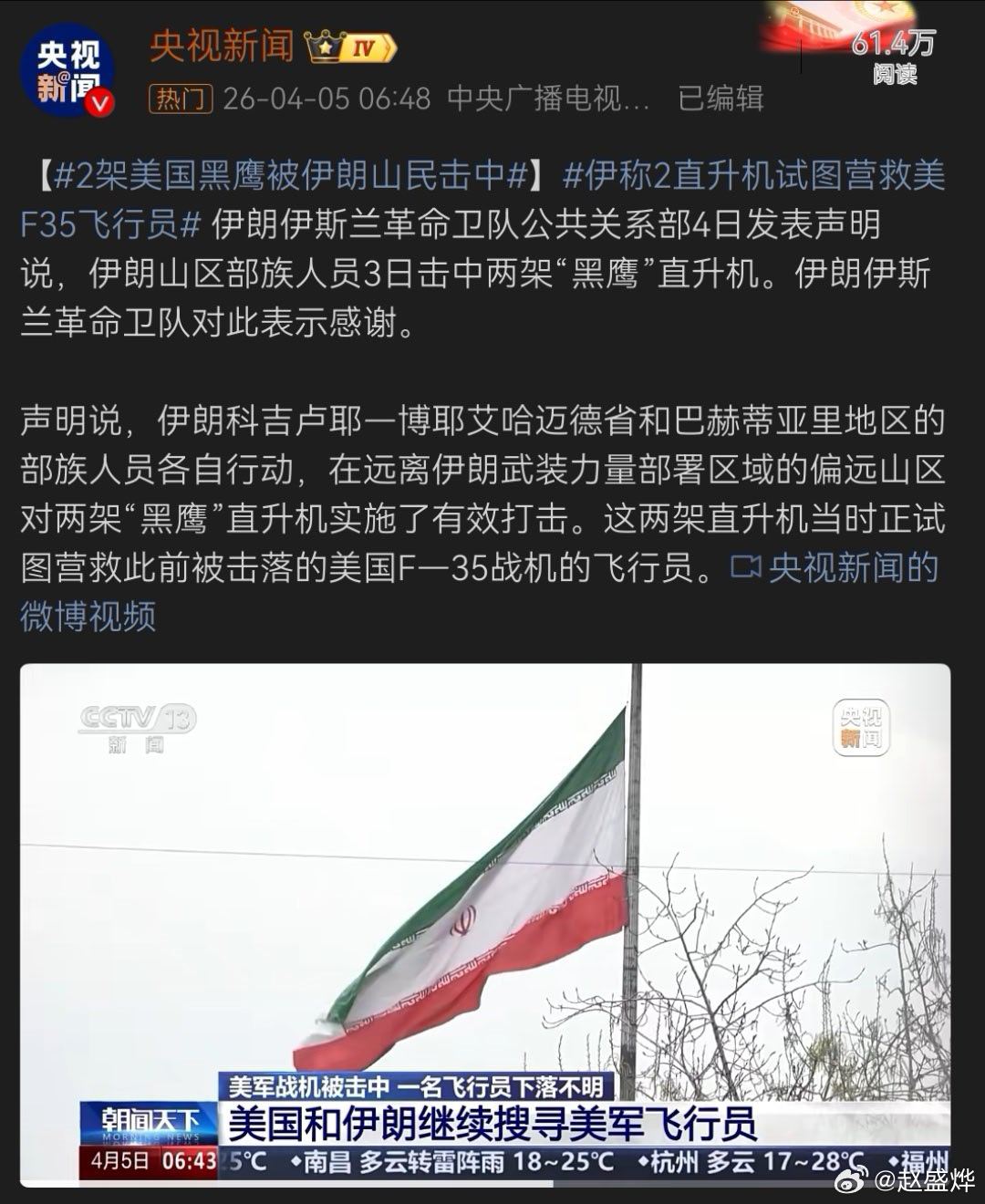 救1个飞行员,需要2个黑鹰,救2个黑鹰的机组,需要4个黑鹰,救4个黑鹰的机组,需要8个黑鹰,救8个黑鹰的机组,应该就需要一个C130了,那么问题来了,救1个C130的人,又需要什么呢?… 伊朗击落2架美战机击中2架黑鹰美议员说对伊战争像捅了马蜂窝