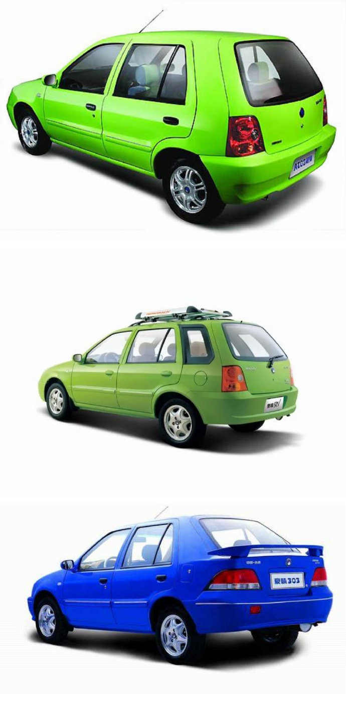 一来吉利当时没有三厢资质,二来预算有限,因此并未逆向原型车夏利的三厢版本,而是修改了两厢豪情车尾,捏出了一个屁股,称豪情300/303,它沿用了两厢豪情的尾门开合方式,即掀背。