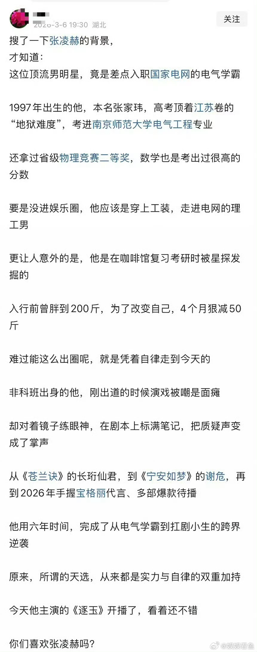 喜欢张凌赫就是喜欢一个底色很好的人