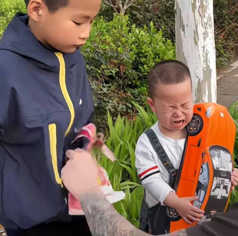 清明上坟遇到熊孩子,老祖宗的家产顺回家,爸爸从孩子兜里掏出了好多纸钱, 对他们说, 你以为这些钱是给你们花的?从大哥的兜里也掏出了好多纸钱, 然后大哥手背在后边, 把金砖藏在了身后, 爸爸一把抢过来, 爸爸最后从小的手上把小汽车也抢了过来, 孩子更是哭个不停。 网友说,一开始以为小孩怀里抱的是个玩具车, 直到老爸把汽车抢过来, 这才发现是老祖宗的家产, 小祖宗抢了老祖宗的东西。 嘿嘿嘿,老祖宗可不会生气,老祖宗疼孙子啊, 拿的出手的也就这么点东西了。 上个坟,你说你们还吃回扣。