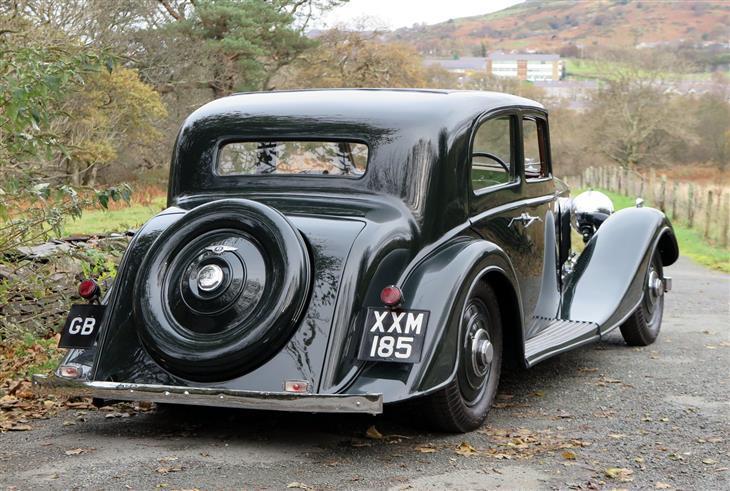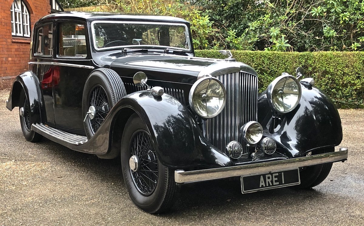 1939款宾利4 1/4 Litre纯正克鲁工厂的宾利,由James Young打造的车体。与奔驰SS一样,宾利的设计者也是奉行了方盒子一样的建筑式设计,但在不同车身平面交会处下了功夫。与其对车身平面进行改良,宾利选择在平面交会处改良,前后杠,备胎等处有了雕塑式的棱角。