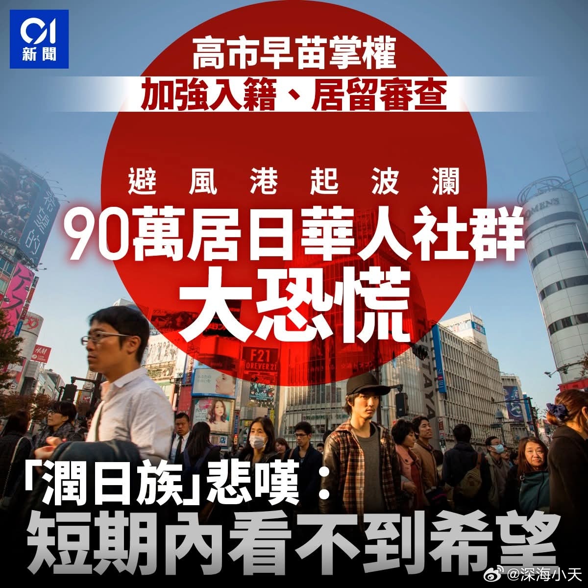 高市上台后润日前律师被刁难,「润日族」悲叹短期内看不到希望《联合早报》报道,去年以来,润日的自称中国前刑事律师伍雷明显感受到,在日中国人遇到的生活阻力正在增加。他向新加坡媒体抱怨「办各种手续时,遭遇无穷麻烦,无缘无故拖很长时间;那种官僚主义得不到合理解释……只能得出一个结论,就是针对中国人。」伍雷自称2019年在互联网发表不当言论而遭吊销律师执照,2022年润往日本,隔年创立「东京人文论坛」,为海外华人提供“讨论中国议题”的平台。他坦言:「日本的华人社会,(出现)非常大的恐慌。有些人已经走了,有些人正准备走。」截至去年中,在日本居住的中国人已突破90万人。随著人数攀升,日本社会对中国移民的反弹情绪也浮出台面。日本首相高市早苗去年11月发表「台湾有事论」后,中日关系更跌入低谷,至今不见缓和迹象。伍雷根估计约一半经管签持有者萌生了离开的念头,「增加投资和雇用日本人成本实在太高,他们可能退而求其次,转向泰国、印尼、马来西亚这些国家。」伍雷悲观直言:「我觉得短期内看不到希望。」他感叹,当前一大障碍是两国人民互不信任,「越主张反对对方,越能赢得支持……两国互相仇恨的言论调门越来越高,让我非常痛心。」伍雷认为,民粹主义和极右翼言论是不负责任的,「事实上两个国家不管骂得多狠,谁都不可能离开谁。」他从历史角度指出,中日之间存在无可替代的历史和文化连接,「中日历史上当然有战争,但更多是交往……日本社会和政治结构的演变,是中国的一面镜子。」请尊重日本文化中东战火烧向奢侈品