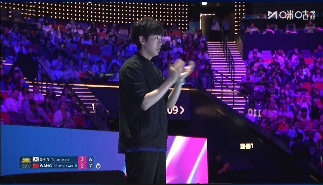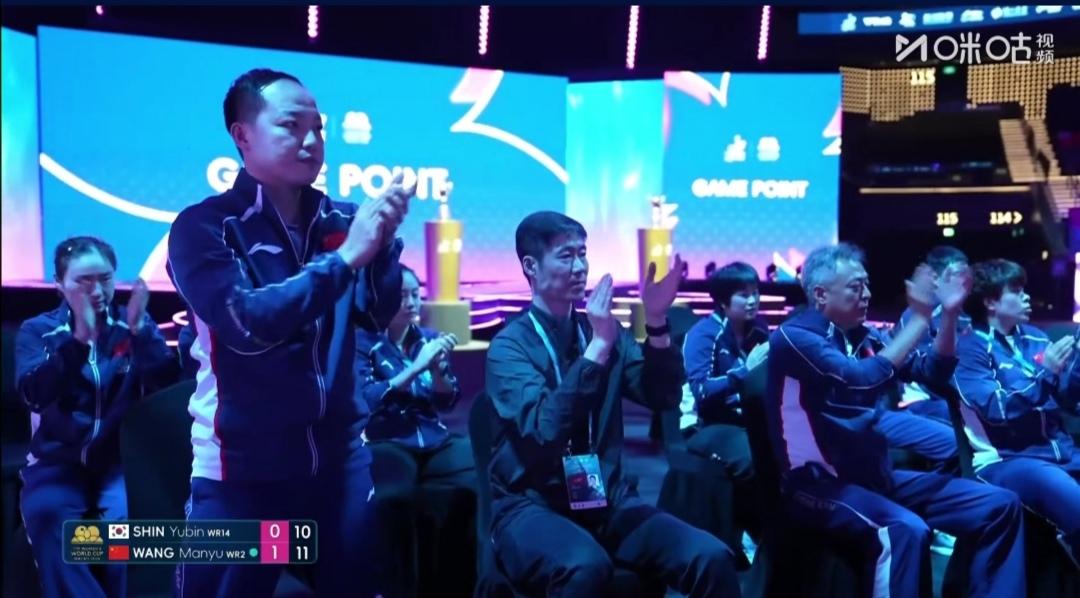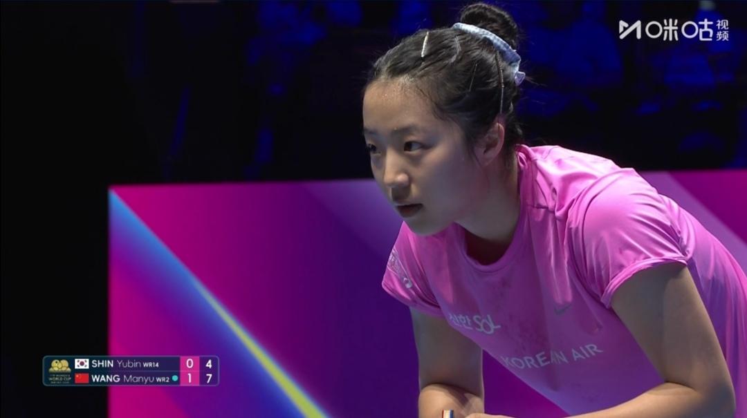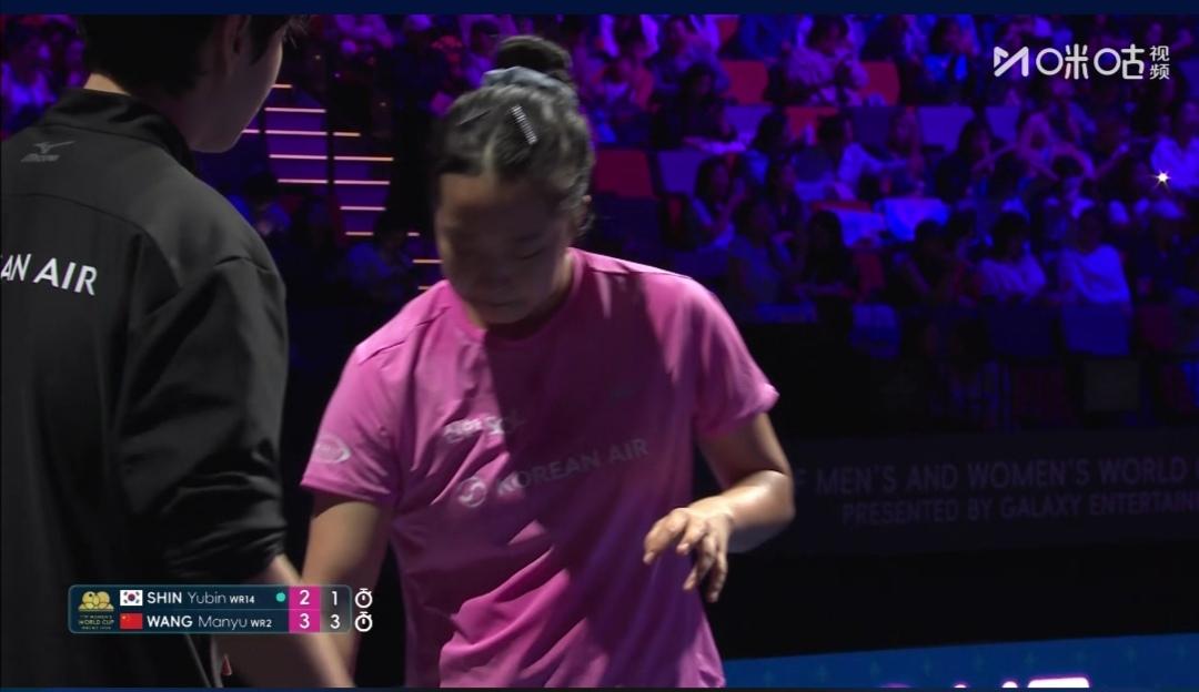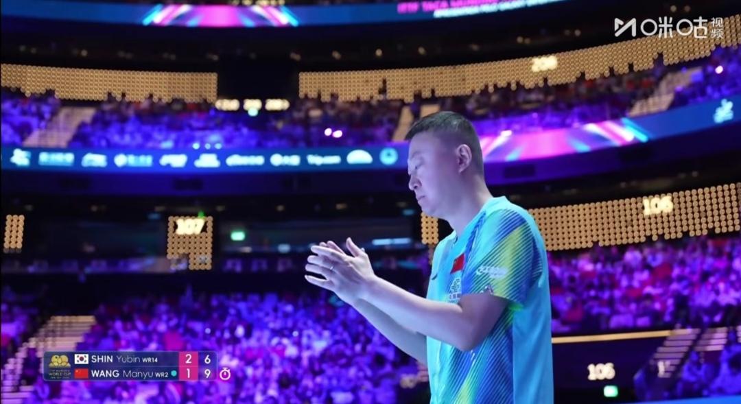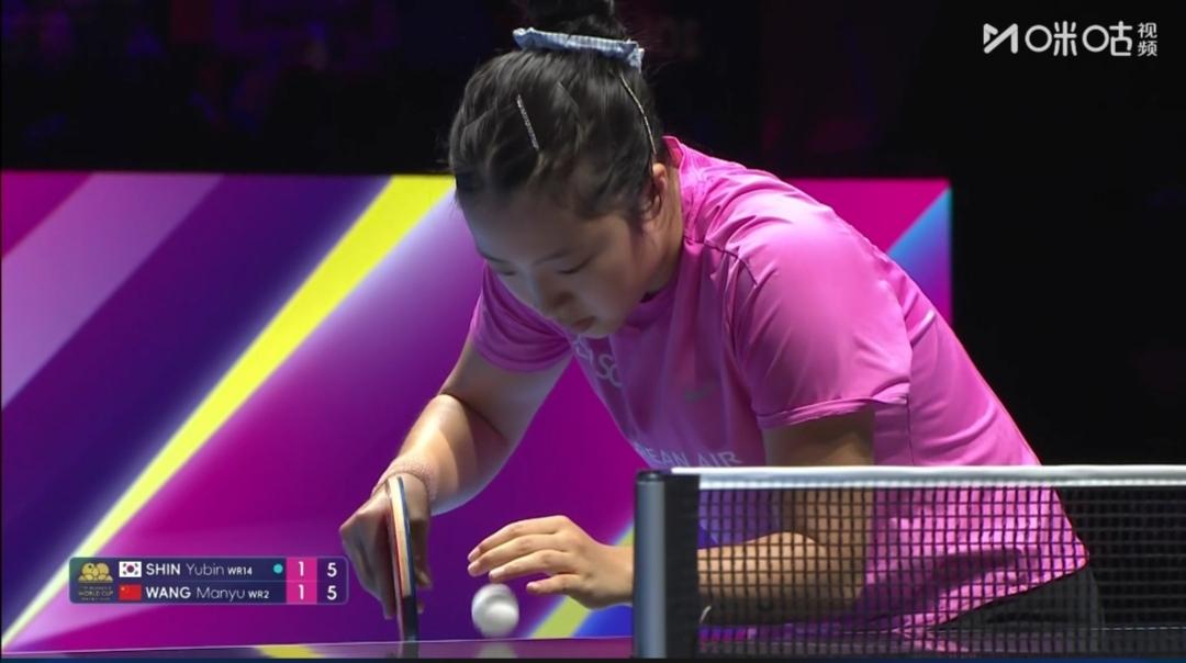 王曼昱4:2胜韩国申裕斌,与孙颖莎会师决赛! 澳门世界杯下半区半决赛 王曼昱Vs韩国申裕斌 第一局,局初2平,局中5平,11-8拿下。 第二局,3平,曼昱7-3领先,10平,11-13憾负。 第三局,曼昱开局落后,追至5平,7平,10平,又是11-13告负。 韩申医疗暂停,还是更衣? 第四局,3平,4平,曼昱7-4,被追至7-6,主教练马琳及时暂停,反手发球,连得4分,11-6扳回比分。 大比分2:2平! 天王山第五局之争! 第五局,曼昱局初落后,追至4平,继续反手发球,一直领先,11-7胜。 大比分王曼昱3:2领先! 第六局,3:1打停韩申,11-5锁定胜局! 王曼昱4:2(11-8;11-13;11-13;11-6;11-7;11-5)胜韩国申裕斌。 热烈祝贺王曼昱挺进女单决赛! 王曼昱,孙颖莎胜利会师女单决赛! 女单世界杯属于中国! 19:30 女单决赛 王曼昱Vs队友孙颖莎
