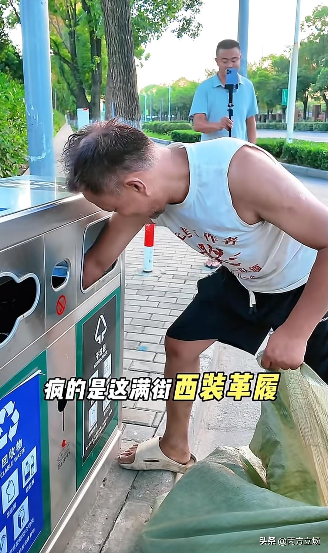 去年刚复出那会儿,沈巍穿着一件“先进工作者”的T恤,背个脏兮兮的垃圾袋,弯腰在垃圾桶里翻捡。身后跟着一群主播,举着手机拍他“落魄”的样子。