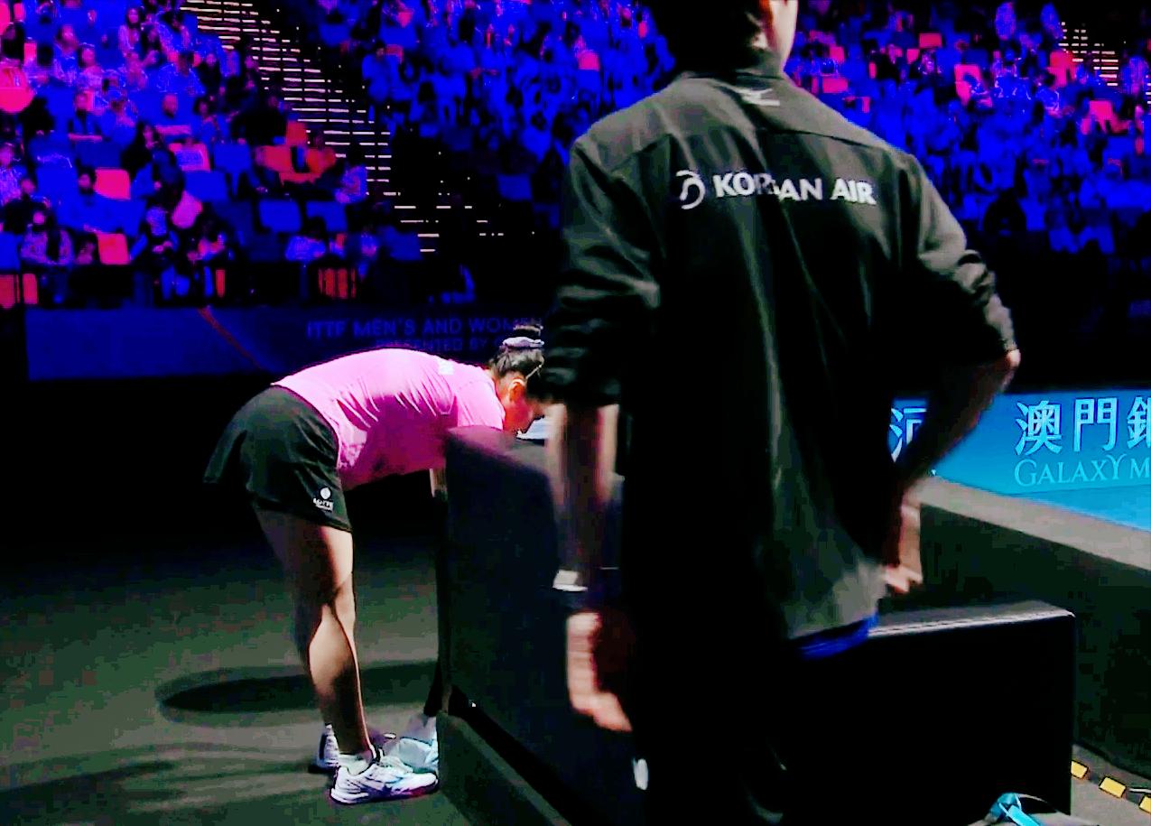 突发!申裕斌怎么突然走出赛场? 她并没拿衣服呀, 不是去换衣服, 干啥去了? 第一局 鳗鱼11:8拿下。 第二局 鳗鱼7:3领先后放松了, 申裕斌13;11逆转王曼昱后, 手感起来了, 鳗鱼难打了 第三局 申裕斌3:0开局, 13:11拿下 申裕斌连续两局13:11拿下, 鳗鱼体力也透支了, 难打了。