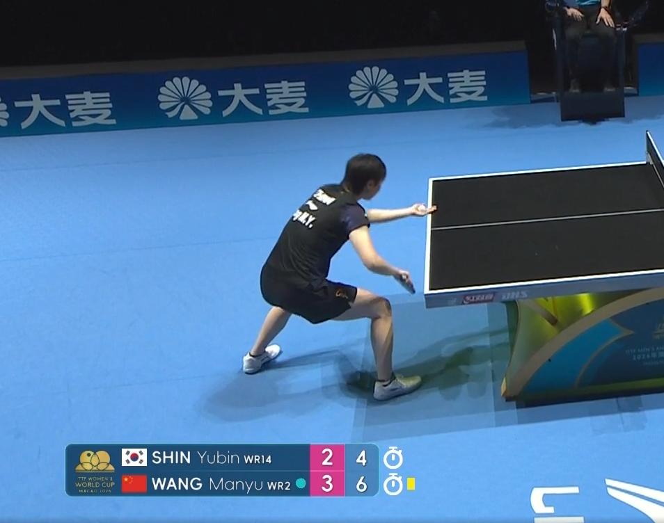 果然!生死时刻,鳗鱼使出了憋着的大招! 由于昨天和桥本打的透支, 今天前三局, 鳗鱼陷入被动, 我以为鳗鱼要输了, 结果鳗鱼使出了反手发球, 直接逆转了局势。 前五局 王曼昱3;2领先。 第六局 鳗鱼继续反手发球, 3:1领先, 申裕斌叫了暂停。 回来鳗鱼5:1继续领先, 10;4拿到局点, 11:4拿下
