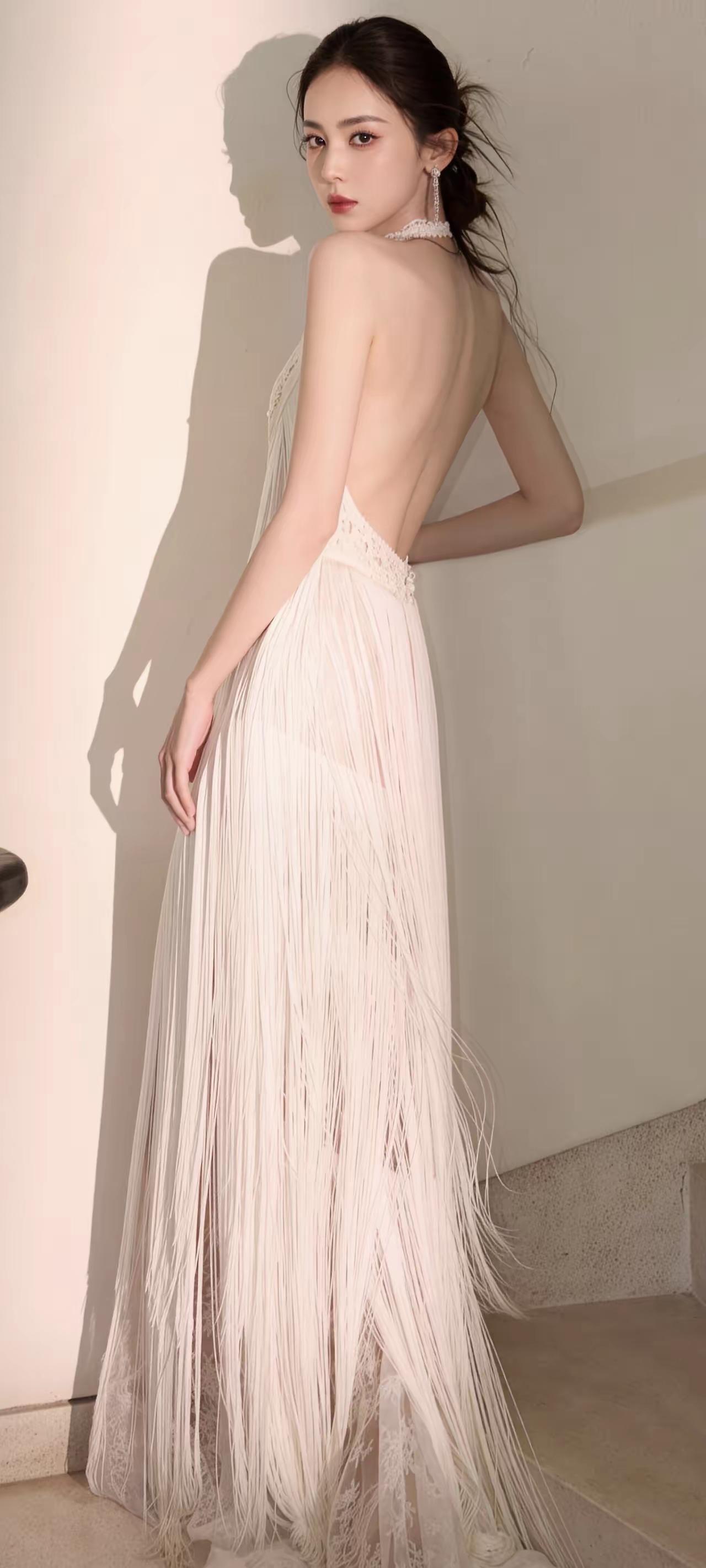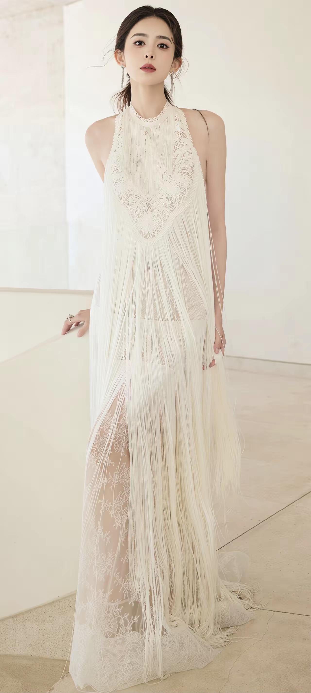 古力娜扎,米白流苏织就浪漫肌理,蕾丝勾勒温柔轮廓,于光影间绽放优雅与灵动,每一帧