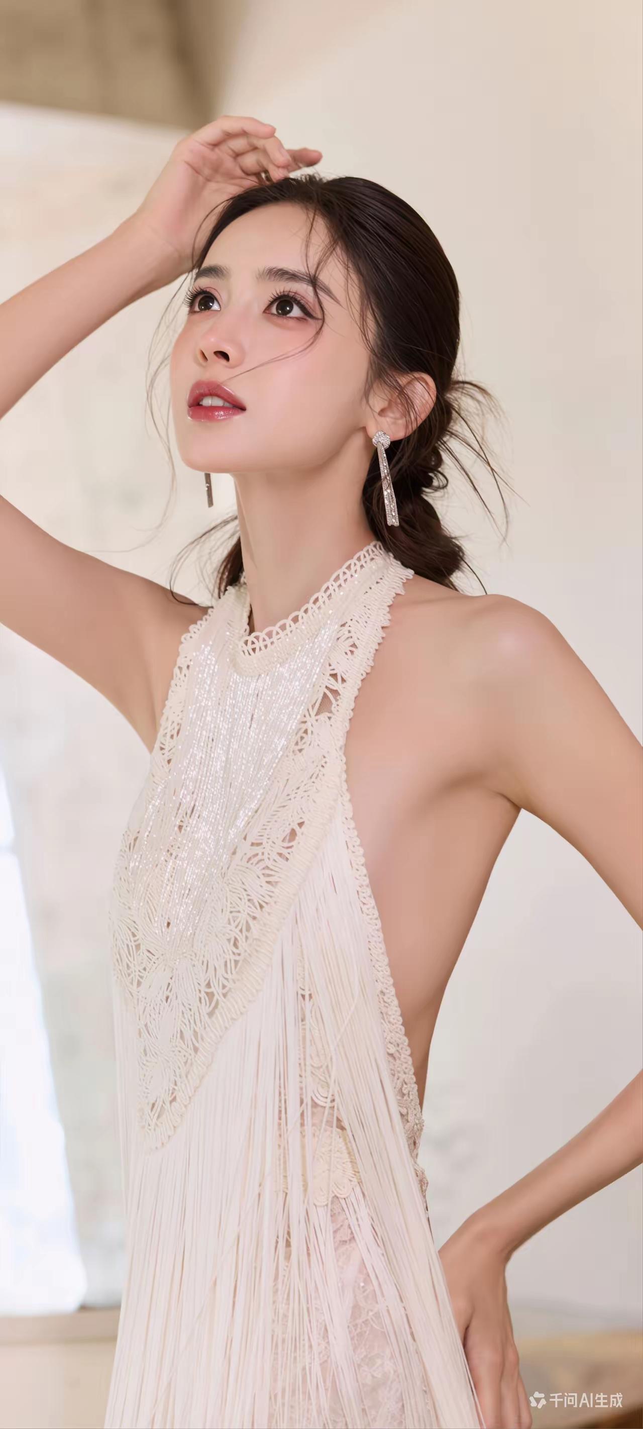 古力娜扎,米白流苏织就浪漫肌理,蕾丝勾勒温柔轮廓,于光影间绽放优雅与灵动,每一帧都是氛围感的极致演绎