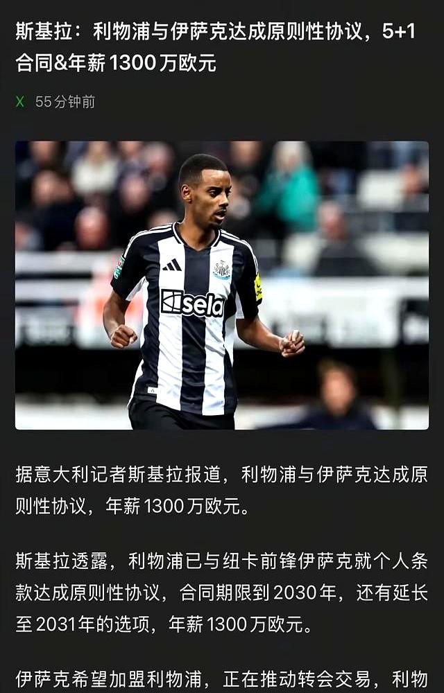 最贵的从来不是工资单! 纽卡斯尔联队当初画的欧冠大饼,伊萨克当真了。结果承诺没兑现,信任直接崩盘。 伊萨克公开摊牌,说关系处不下去了。球队想用20万周薪的队史顶薪挽留,可人家要的是能争冠的舞台,不是空头支票。 转会窗最后一天,利物浦出手了!1.25亿英镑,直接破了英国转会纪录。伊萨克拿28万周薪,排队内第三,仅次于萨拉赫和范戴克。 有时候,一次失信的代价,就是一个多亿。