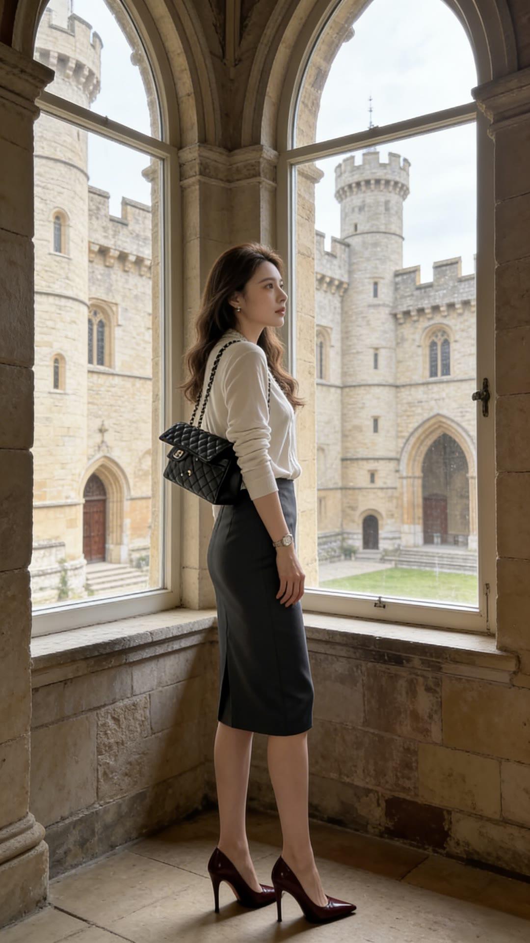 白色V领针织开衫+深灰色半身裙,既优雅又简约大气。