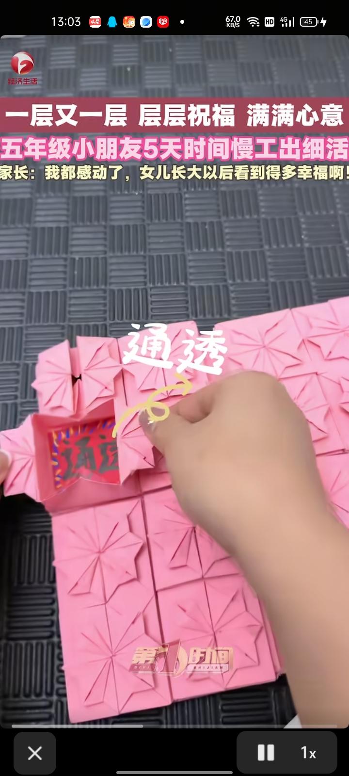 4月4日,黑龙江哈尔滨。网友晒视频称,自己收到了五年级小朋友制作的的手工礼物,里面有满满的祝福语,还有一个“终极大奖”,特别惊喜和感动,要是女儿长大后看到这个得有多幸福。原来最打动人的从来不是礼物多贵,而是藏在里面的时间和真心