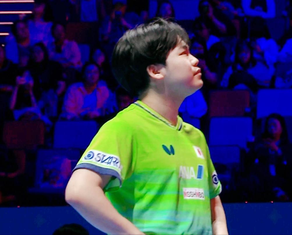 我去!松岛辉空开局就回抛呀! 被裁判扣分后, 他还不服, 结果挑战鹰眼失败, 33度多了。 不过我感觉松岛辉空很适应无缝球, 决赛大概率是王楚钦对战松岛辉空。 果然第一局 松岛辉空11:7拿下。 大头一定注意了, 如果松岛辉空决赛时敢回抛, 不要给他留面子, 直接请求鹰眼。