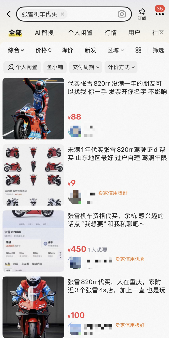 张雪机车 为啥要出一个新手购买禁令?因为这车马力大、加速快,油门灵敏度特高,新手根本掌握不了,很容易出事故。这些黄牛明知如此还肆无忌惮的帮着“代买”,一旦出了事儿,他们就是最大的帮凶!!