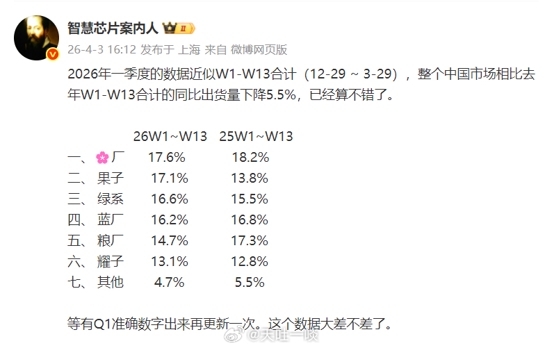 PS:可以讲最大的赢家其中是苹果,因为苹果是同比份额增加最多的。小米调价