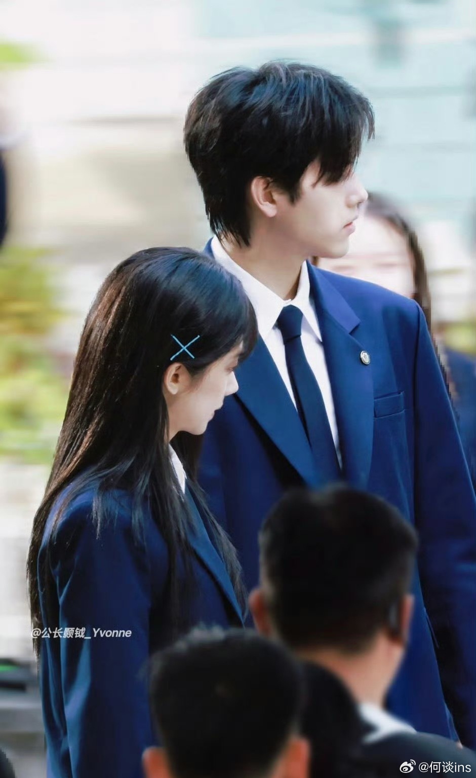 陈飞宇、王影璐电影《见春天》热拍中,校服版的魏清越和江渡