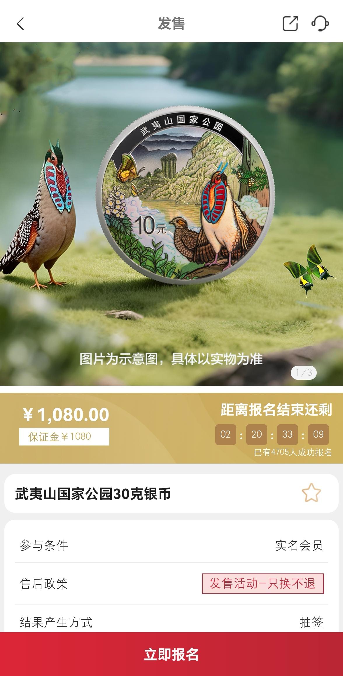 3克金币卖4500元!武夷山国家公园纪念币刚公布价格,看完这笔账我彻底沉默了 “3克金币,要卖 4500元。” “30克银币,要卖 1080元。” “金银套装,要卖 5580元。” 这不是什么路边金店的报价,而是官方刚刚公布的武夷山国家公园金银纪念币发行价。目前金币云商正在摇号预约的价格。 很多朋友第一反应是:太贵了吧? 别急,咱们今天就来算一笔细账,看完你就知道,这价格到底值不值。 先说黄金。目前国际金价大约1030元/克。这套金银币中的金币是 3克纯金,原料成本撑死3100元出头。但这枚3克金币的发行价是4500元,折算下来每克1500元,比原料价贵了将近470元/克,溢价率高达67%。 再看白银。现在白银料价约17.5元/克,这枚银币重量30克,原料成本也就525元。而这枚银币卖1080元,折算每克36元,比原料价翻了一倍还多,溢价逼近50%。 算到这里,很多人会觉得官方在“割韭菜”?从前一段时间 26 中国龙封装版预约人数三百多万到目前这套金银币预约人数还不足两千就可以看出,大家参与热情不高, 但是别急,事情没那么简单。 如果你把纪念币当成黄金白银来买,那确实贵得离谱。但纪念币从来就不是按“料价”卖的。它有三个普通金条永远比不了的价值: 第一,法定货币属性。这是中国人民银行发行的国家纪念币,有面值、有国徽、有央行的信誉背书,不是随便一个金店能比的。其文化价值和意义也不是金条纪念章可以比拟的。 第二,工艺和艺术价值。精制币的镜面、喷砂、浮雕工艺,加上武夷山国家公园的独特设计——玉女峰、九曲溪、大红袍茶树,这些都是钱币设计师的心血,普通金条纪念章拿什么比? 第三,稀缺性和收藏意义。这套币是“国家公园”系列的重磅延续,前面有三江源,热带雨林等品种,现在是武夷山。限量发行、配套证书、礼盒包装,买来送人或者自己收藏,意义完全不一样。 再说了,普通老百姓去金店买个小金豆或者戒指项链,每克也要加几十上百元的工费。而纪念币的溢价,本质上就是为“官方发行+精美工艺+限量收藏”买单。 当然,我也不是说这个品种让大家闭眼冲。如果你纯粹是为了投资,想赚快钱,那贴着料价买金条或者黄金ETF可能更合适。但如果你是为了收藏、送礼、或者单纯喜欢武夷山这个题材,那官方发行价反而是一个相对透明、相对公平的基准线。 当然了,作为收藏爱好者,这套武夷山纪念币确实是贵,但值不值,看你用它来做什么。把它当成一份有分量的国家公园记忆,心态就稳了。 喜欢就买,量力而行,这应该是我们很多人应该保持的良好心态,别拿它当黄金,也别指望一夜暴富——收藏的乐趣,从来不止是价格。