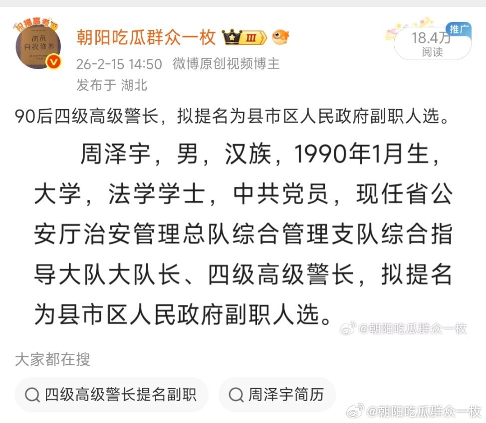周泽宇任茶陵县副县长。 他曾任湖南省公安厅治安总队内保支队副支队长,湖南省公安厅