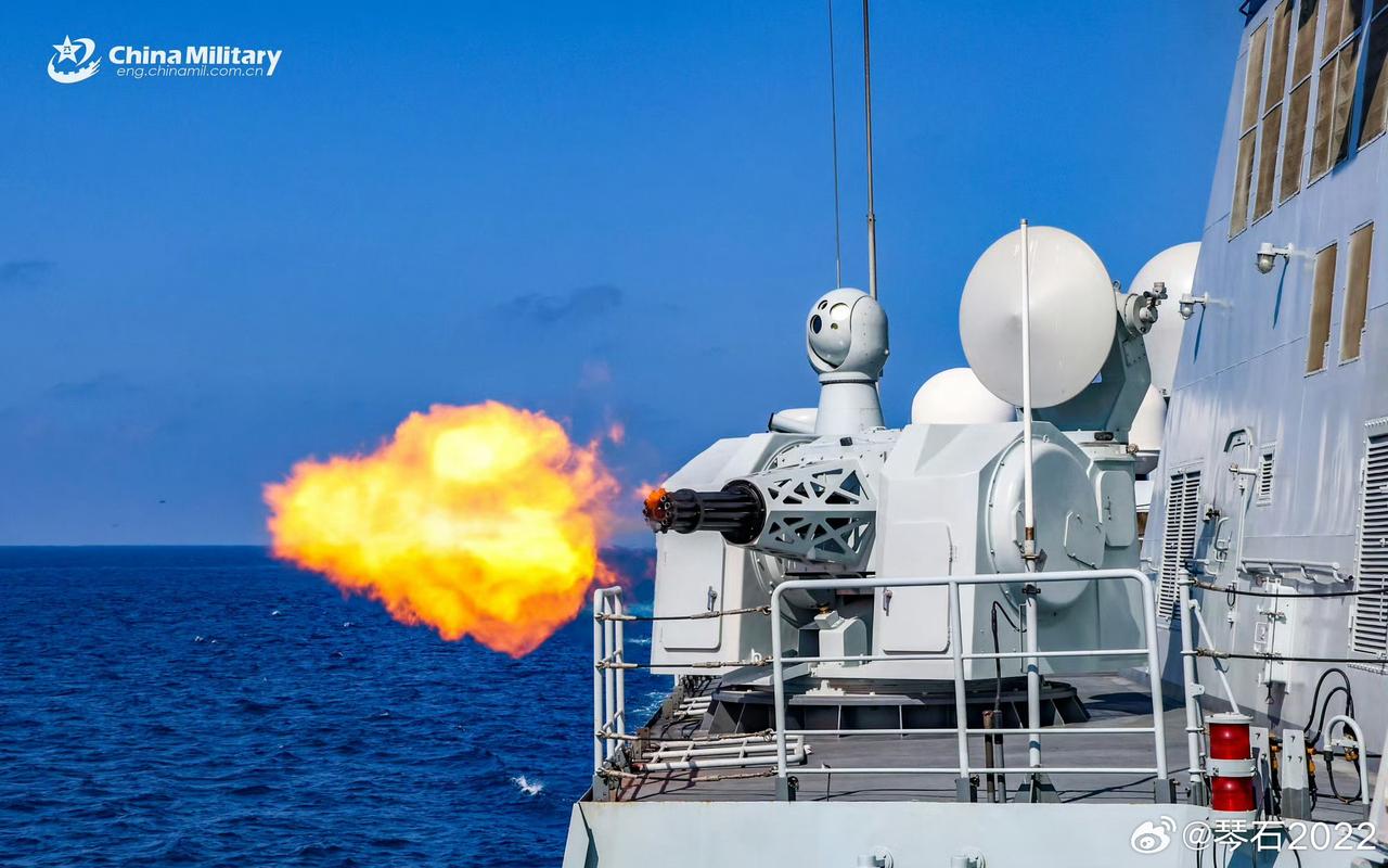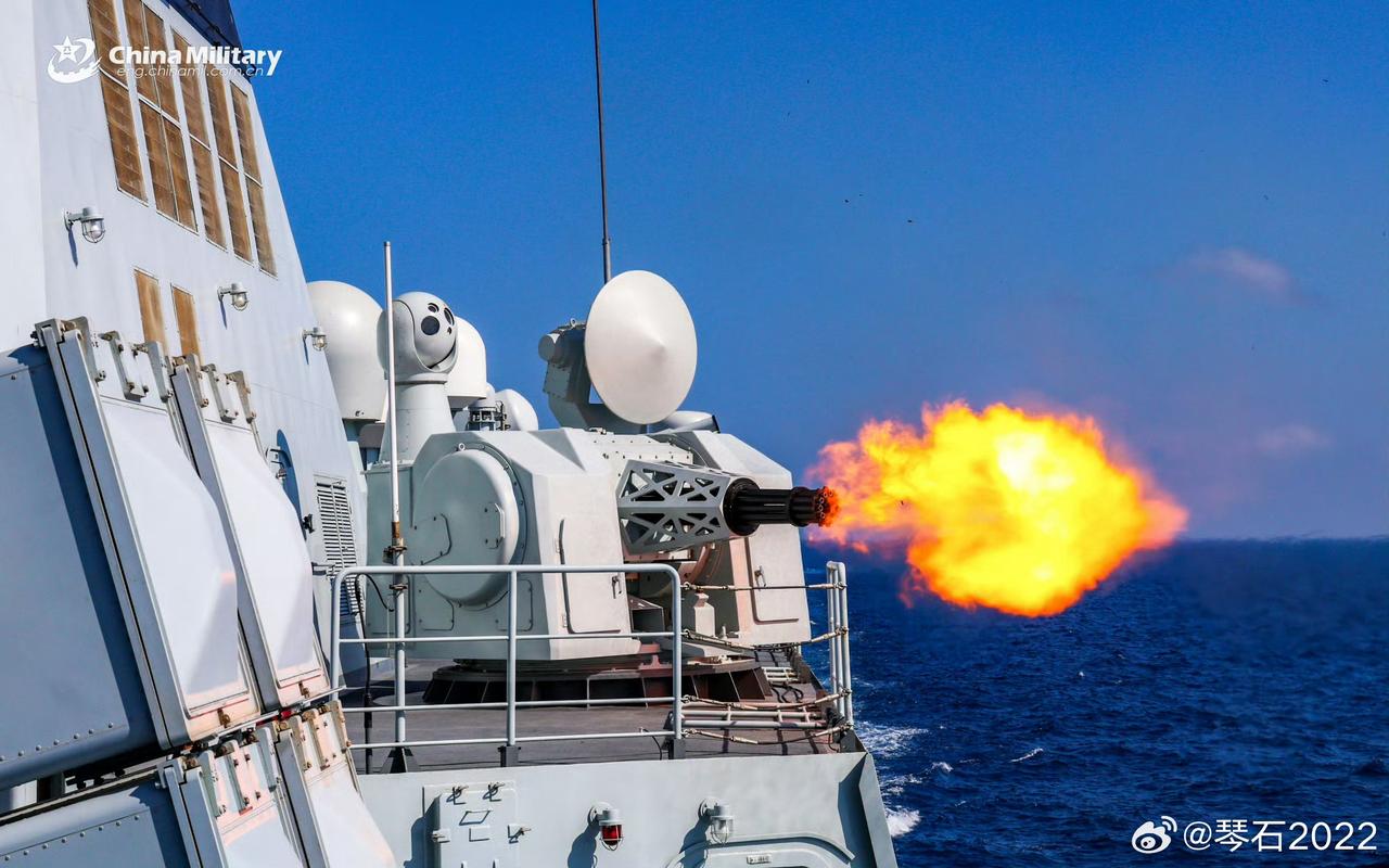 这是054A最新批次上的11管的万发近防炮在设计中,大家注意炮塔上的两个传感器子