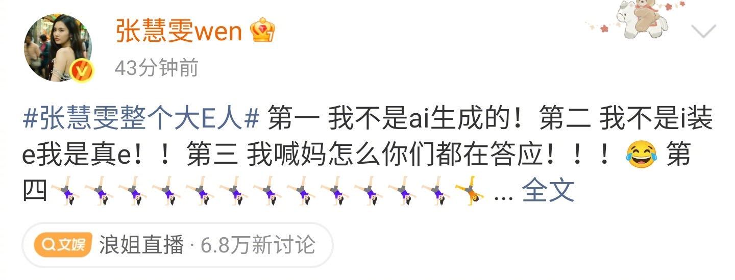张慧雯回应整个大E人 真的又被可爱到了,看到热搜上说自己是大E人,一下舞台就回应,还发了一长串侧手翻的表情,那就这样在乘风2026 的路上越走越远吧~