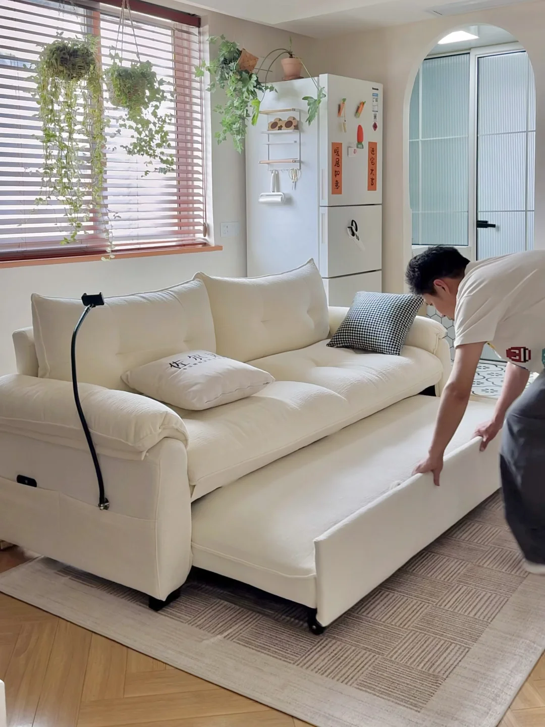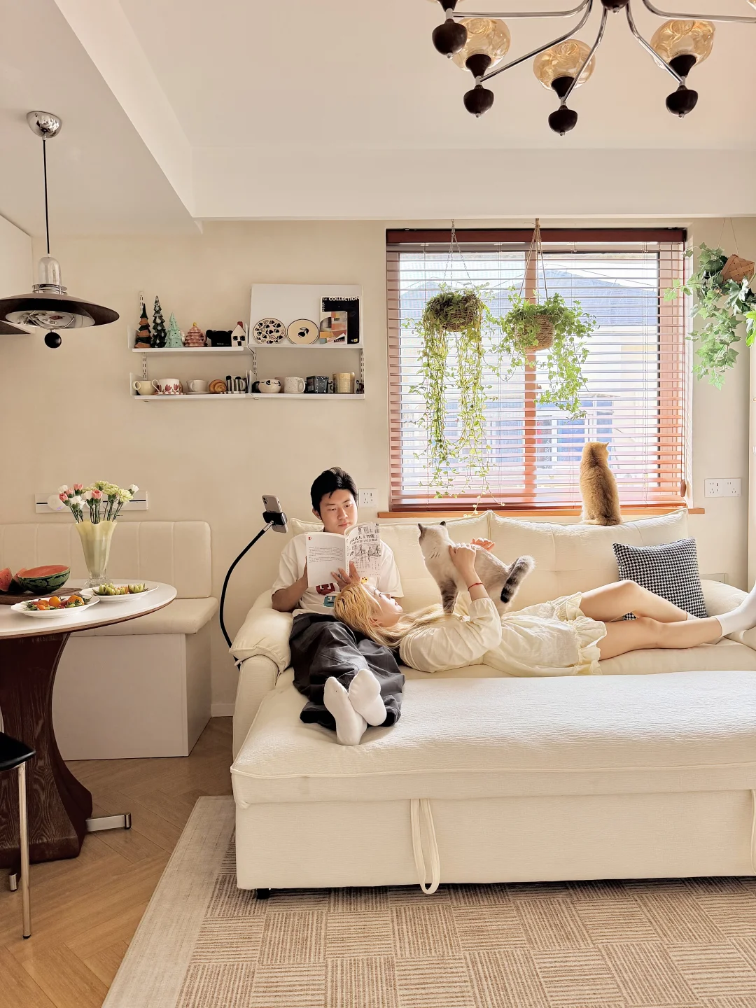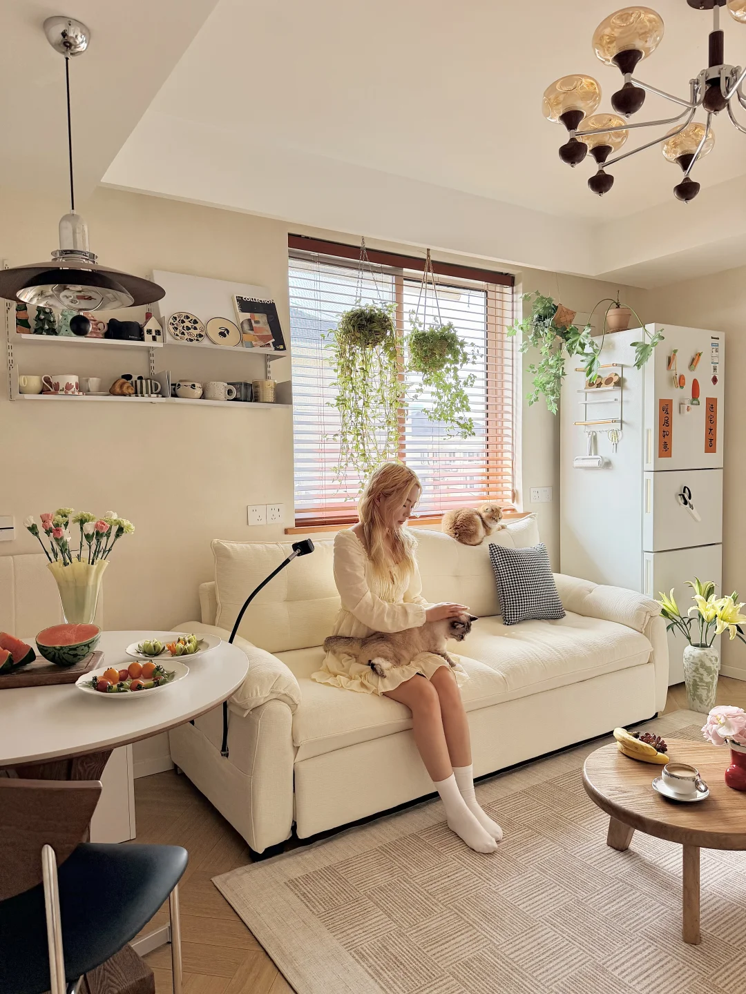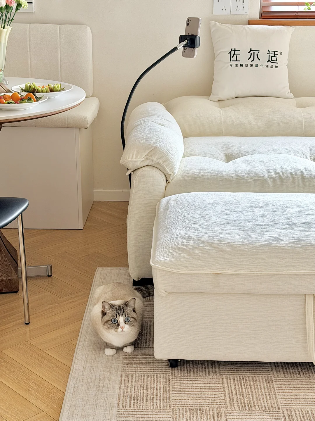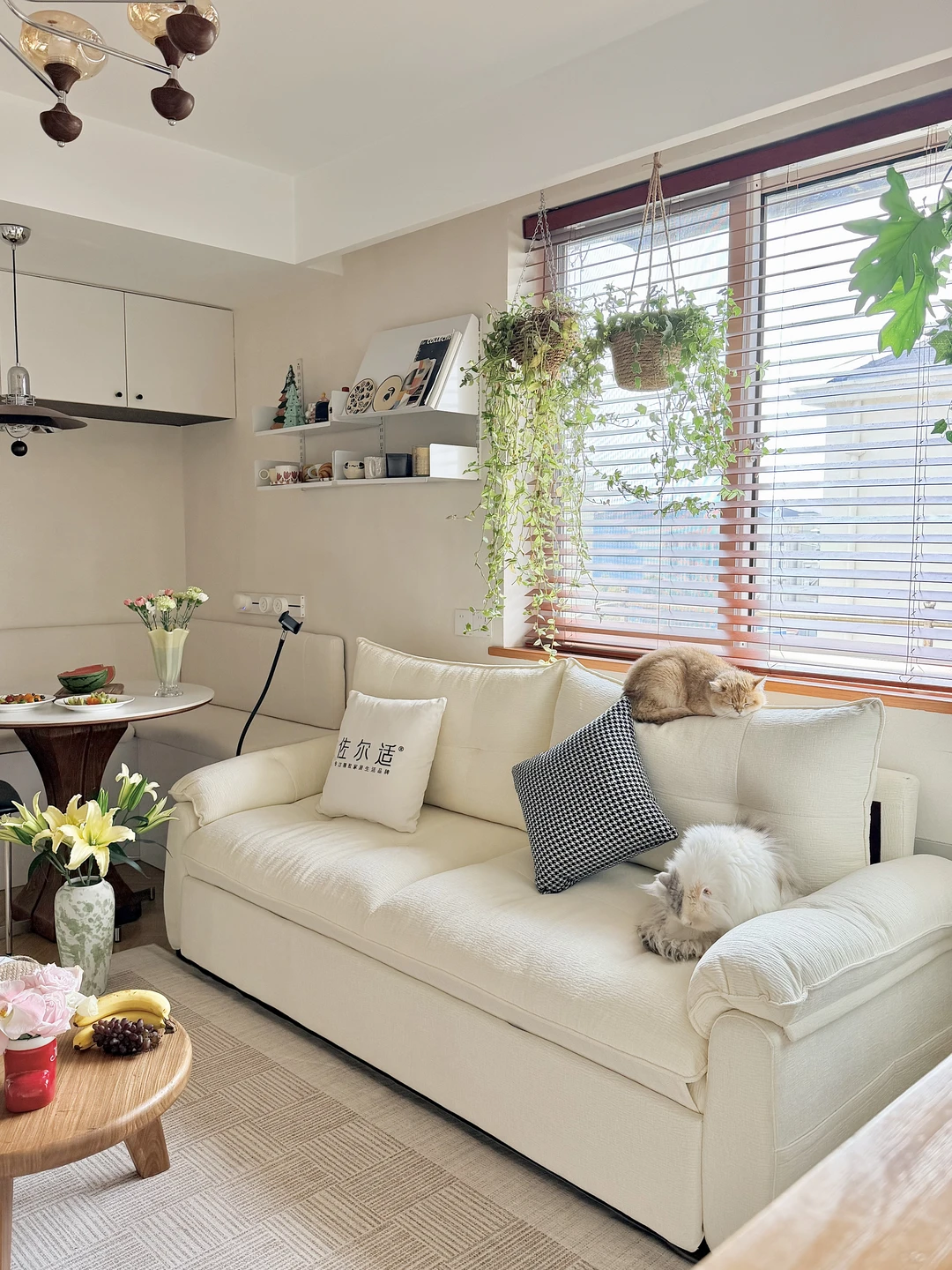 在寸土寸金的上海, 拥有了65㎡的小家🏡。 两个人💑,三只猫🐈, 日子简简单单,但也温柔热闹。 客餐厅加起来只有14.85㎡, 之前一直愁客厅家具。 空间小,不敢买太大的沙发🛋️; 养猫,又怕沙发被抓得面目全非; 偶尔朋友来住,打地铺又实在委屈人。 挑来挑去,差点妥协将就。 直到遇见这张沄巢沙发床, 才懂什么叫刚刚好的幸福🥰。 它不大,放在小客厅里刚刚好, 不挡动线,不压空间。 最喜欢和老公靠在一起窝在沙发上, 他处理工作💻,我看书📖, 三只小猫🐈在旁边蜷成一团, 小小的空间里,全是安心的烟火气。 偶尔不想回卧室, 就把靠背调低,半躺着相拥看部电影🎬, 头靠在靠背上,脚随意舒展, 软乎乎的包裹感,一天的疲惫都被抚平。 家里三只小猫🐈上蹿下跳, 也终于不用再提心吊胆—— 猫抓布耐造又好打理,不勾丝、不粘毛, 偶尔弄脏,一擦就干净,布套还能拆洗, 对养宠人来说,真的太安心。 朋友留宿时,轻轻一拉就变成一张大床🛏️, 不用再委屈别人睡地板, 也不用为了一张床多占一整个房间。 小户型的快乐, 从来不是多大的空间, 而是每一件东西都贴心、合用、懂你。 有猫,有你,有一张怎么待都舒服的沙发床, 小小的家🏡,也满满都是幸福感💕。