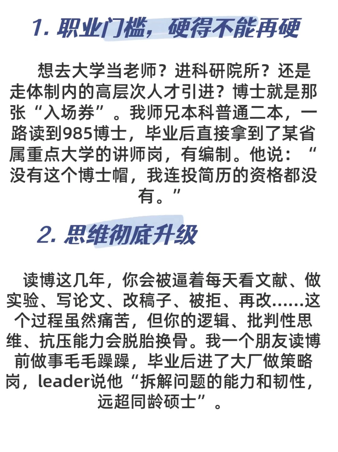 读博对未来发展的利与弊 社会的时钟摇摇摆摆,每个人的观点不一Ai的潮,裹着时代不断前进,任何事情都有正反两面,重点是你的心和你想要成为什么样的人。 读博要思考清楚,正反两个方面说说读博,鼓励一群人,劝退一群人。 V读博的好处