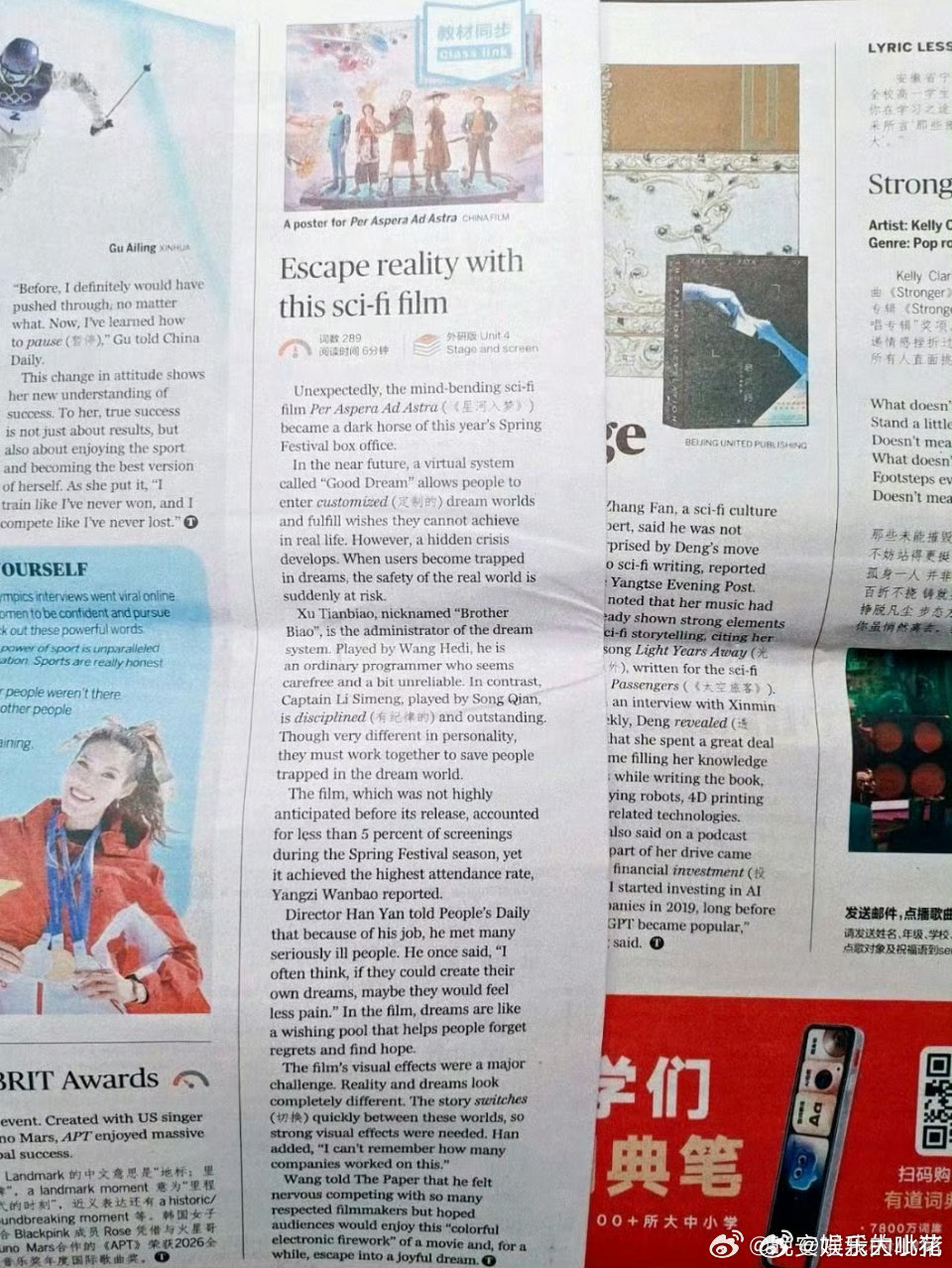王鹤棣星河入梦登学生英语报王鹤棣星河入梦登二十一世纪英语报昨天是登好莱坞报道,今