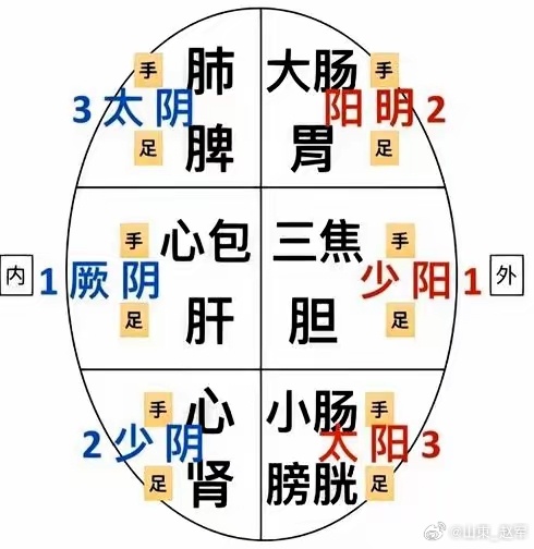 《黄帝内经》血气形志篇中说:太阳多血少气经,手足两经要分清少阳多气少血经,胆经三焦是其名 阳明多气多血经,胃与大肠要记清 少阴多气少血经,肾与心经要分明足太阳与足少阴相表里足少阳与足厥阴相表里足阳明与足太阴相表里手太阳与手少阴相表里手少阳与手厥阴相表里手阳明与手太阴相表里 淄博·广成中医