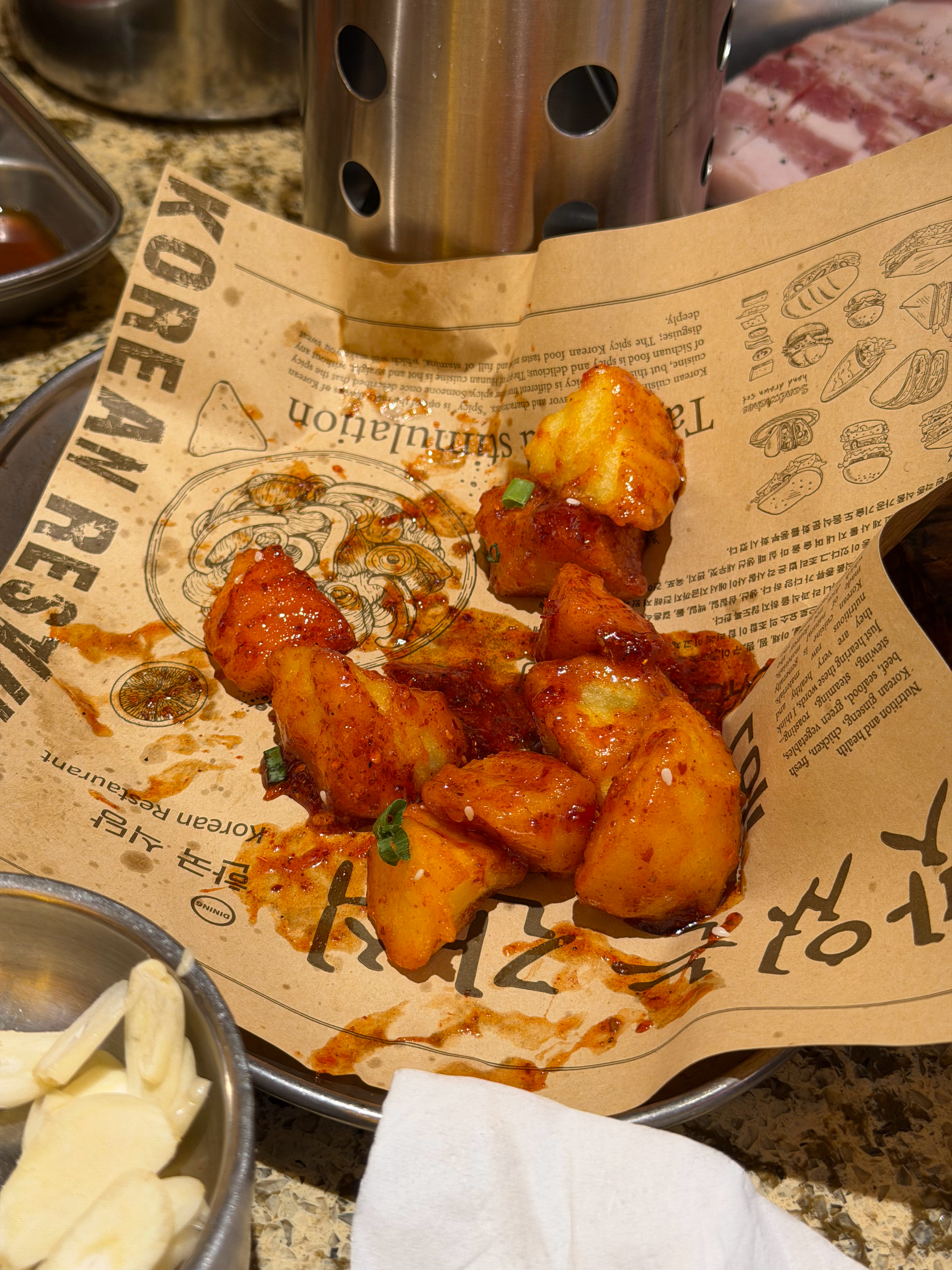 吃了一口土豆,不好吃,忍不住吐槽一句,好难吃,旁边的服务员看了我一眼👀感觉怪怪