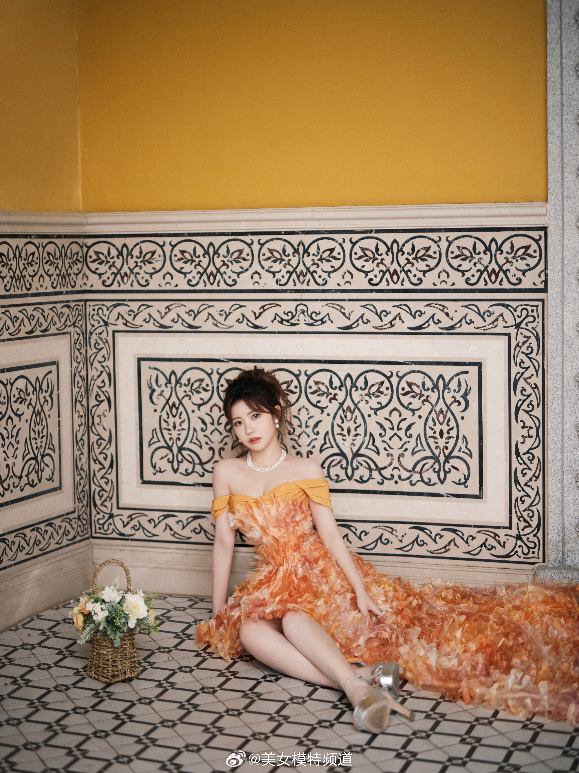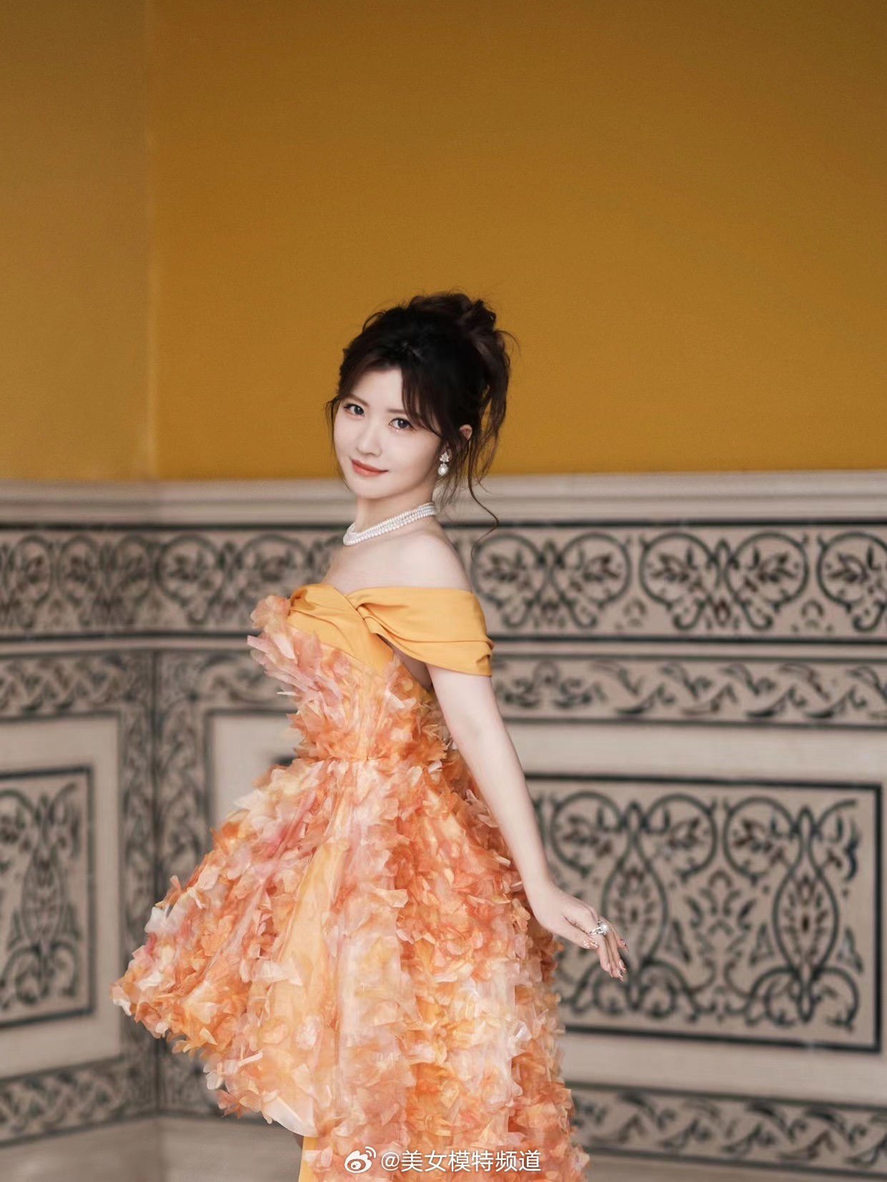 一袭长裙的御姐型美女,那气场简直绝了。就说穿搭,黑色丝绒包臀紧身长裙配黑色缎面吊