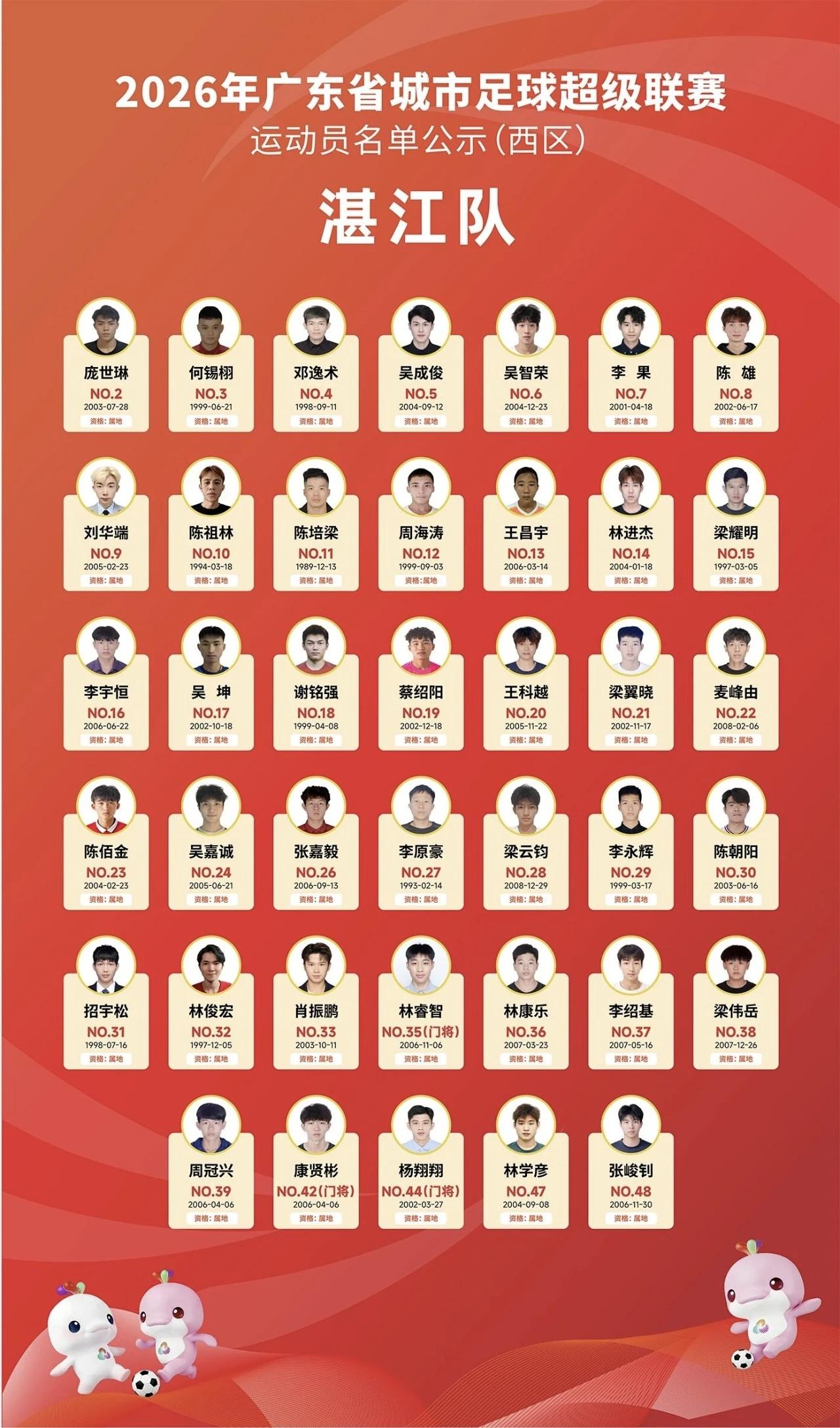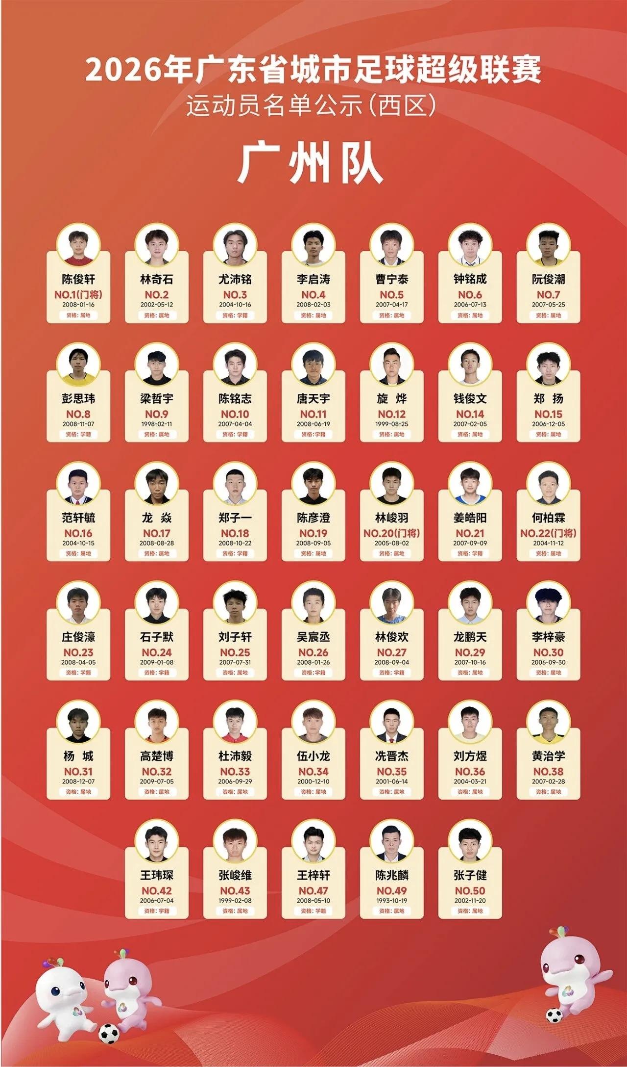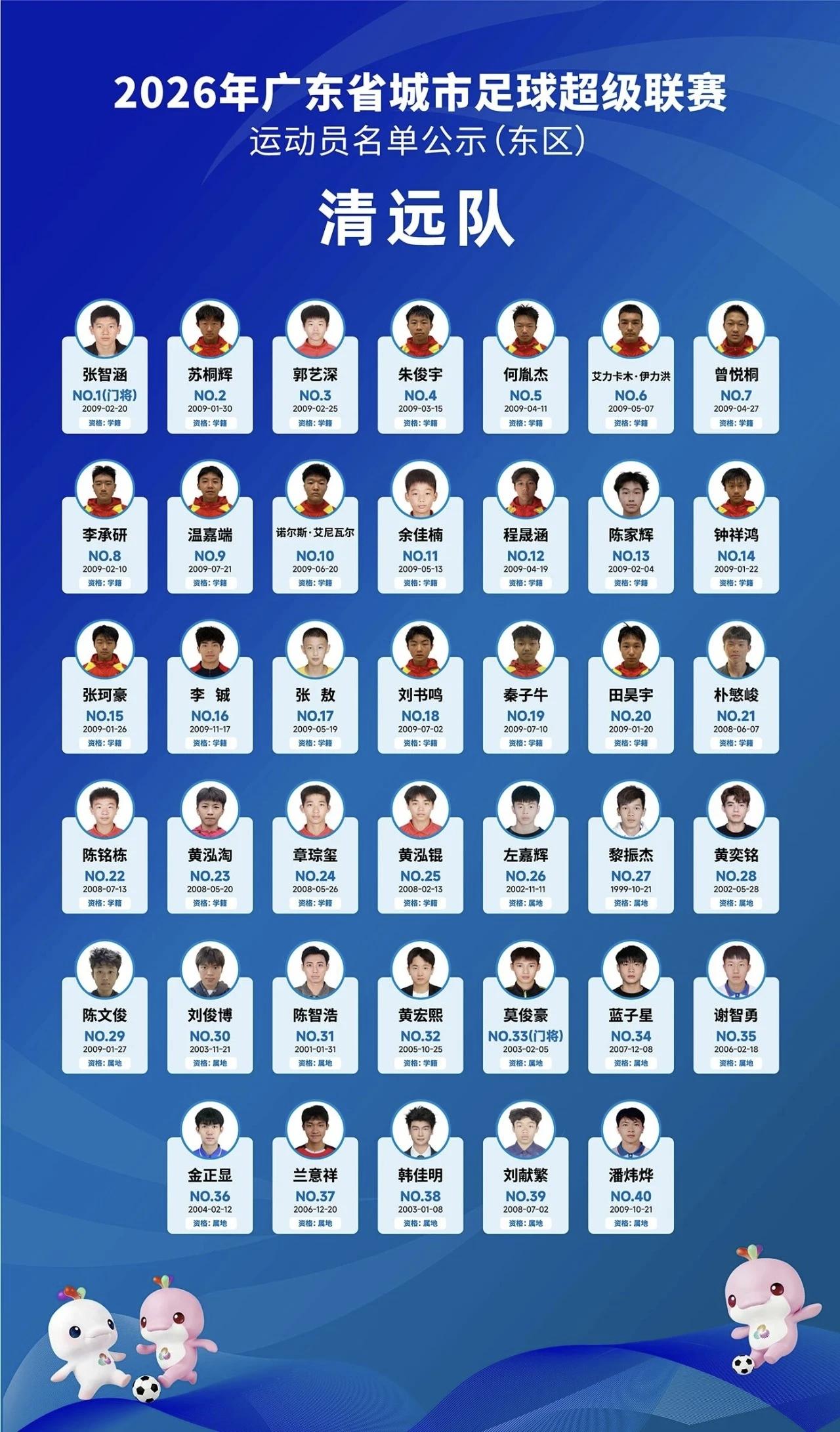 粤超大名单出炉!恒大足校09年龄段梯队将代表清远队参赛!广州队则以广州豹梯队球员为主。梅州队以梅州客家梯队球员为主。湛江队以吴川青年和湛江热点队等球员组成。预计以上四队将是夺冠热门,希望清远能夺冠,加油💪