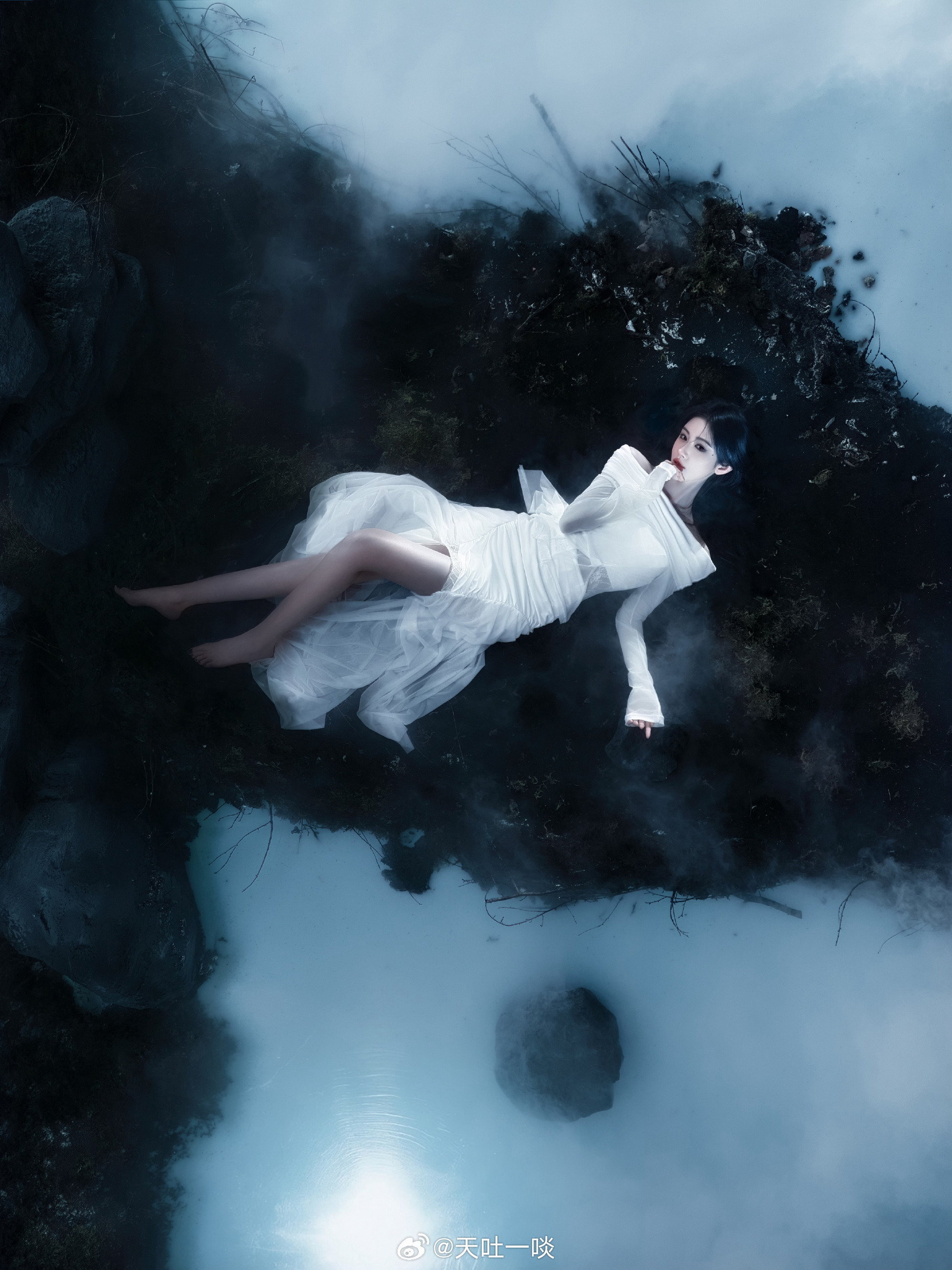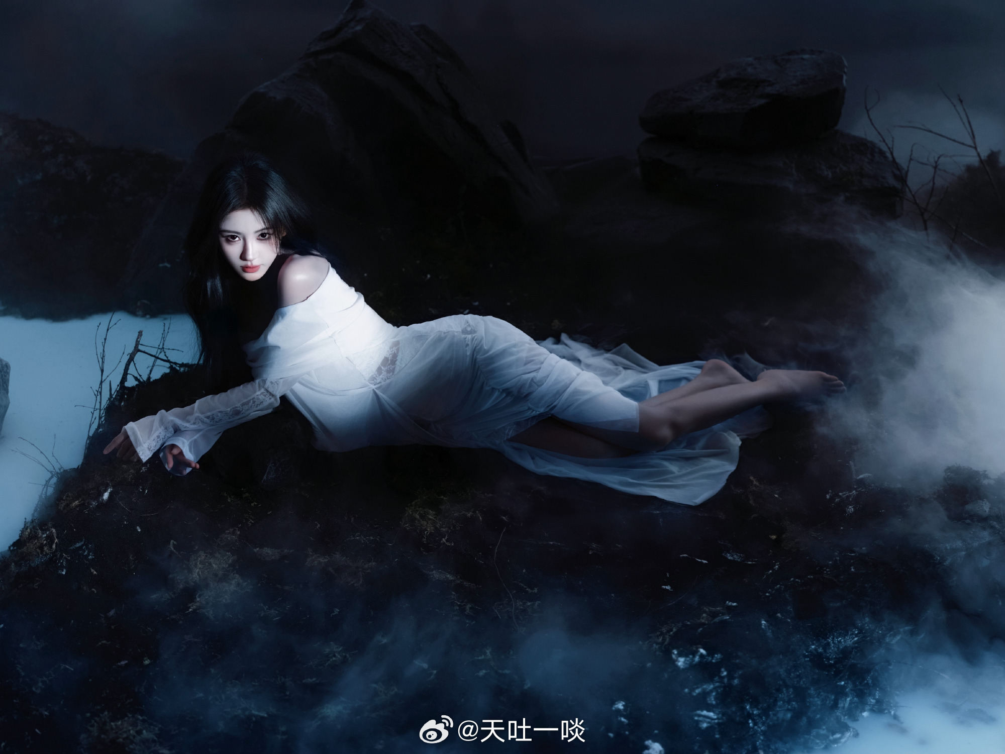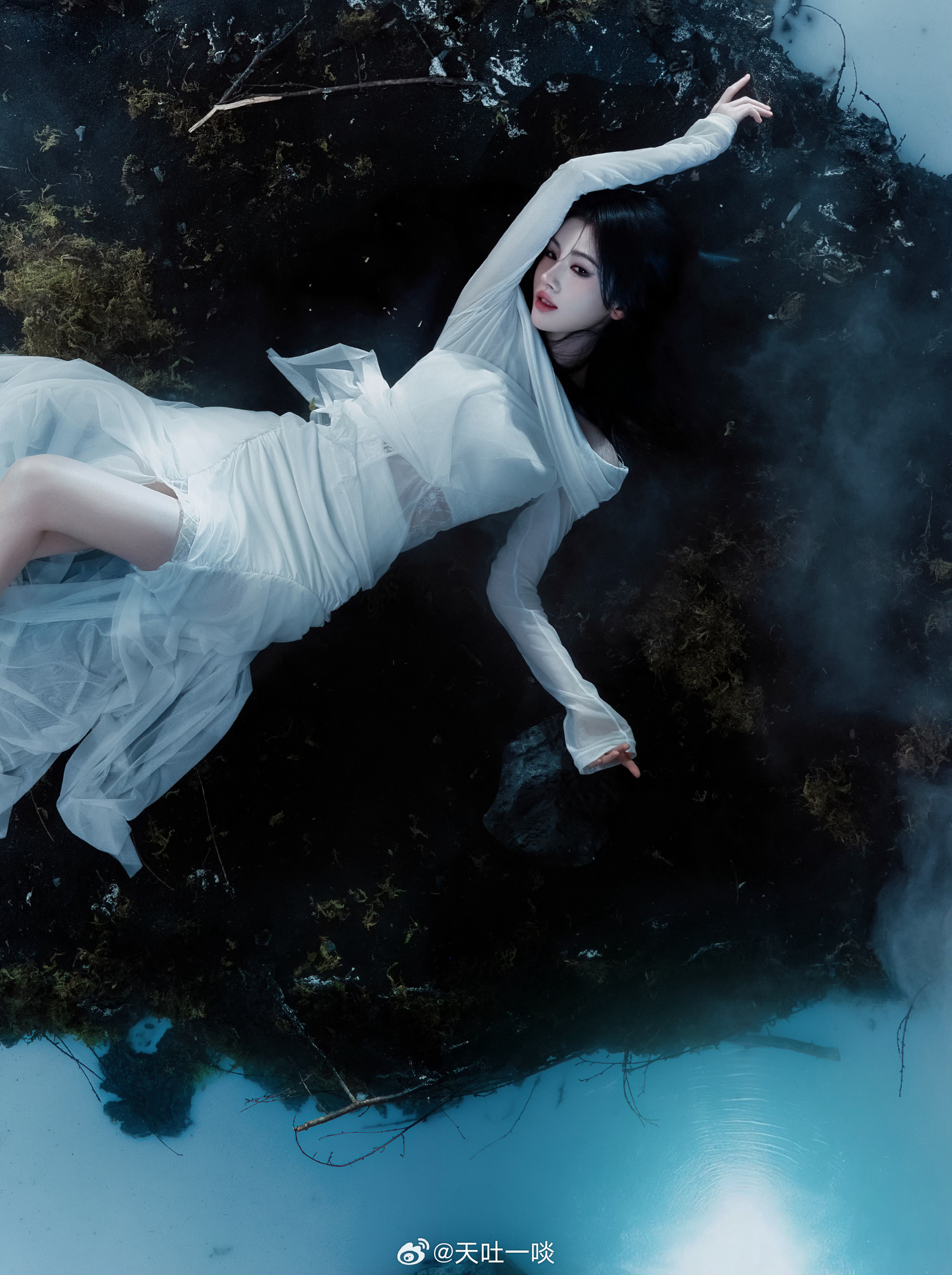 白纱裙妆容精致、被烟雾缭绕仙气足——鞠婧祎。每日明星美图分享