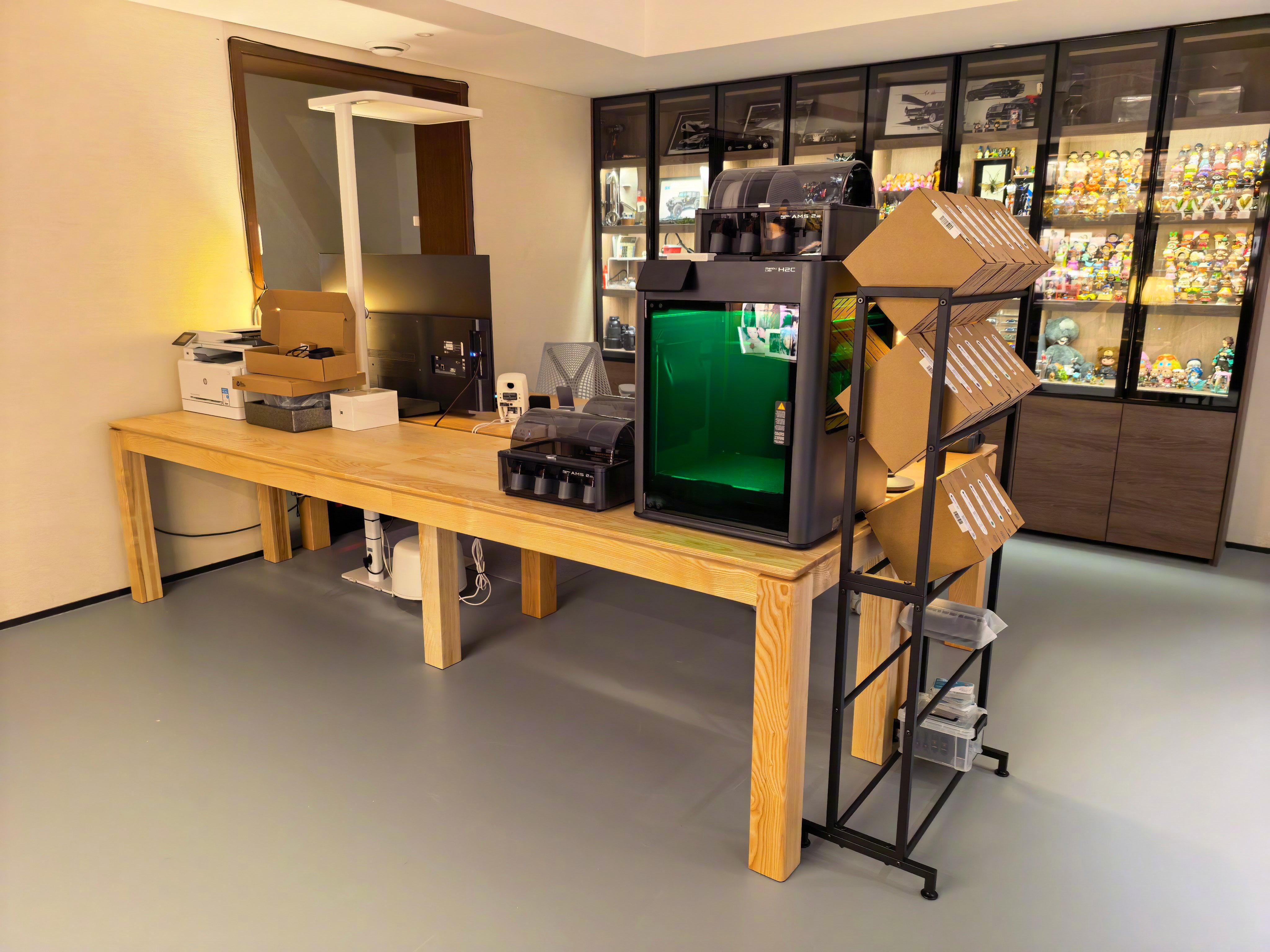 找定做的这3米大实木桌子也非常非常稳,3D打印机工作时候会晃动,桌子稳的一匹,我这是两个3米桌子拼的,两个桌子在北方过冬没开裂,不错!