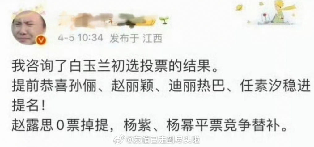 网传白玉兰最佳女主初选投票网传白玉兰女主初选投票,杨幂《生万物》宁绣绣冲!从流量