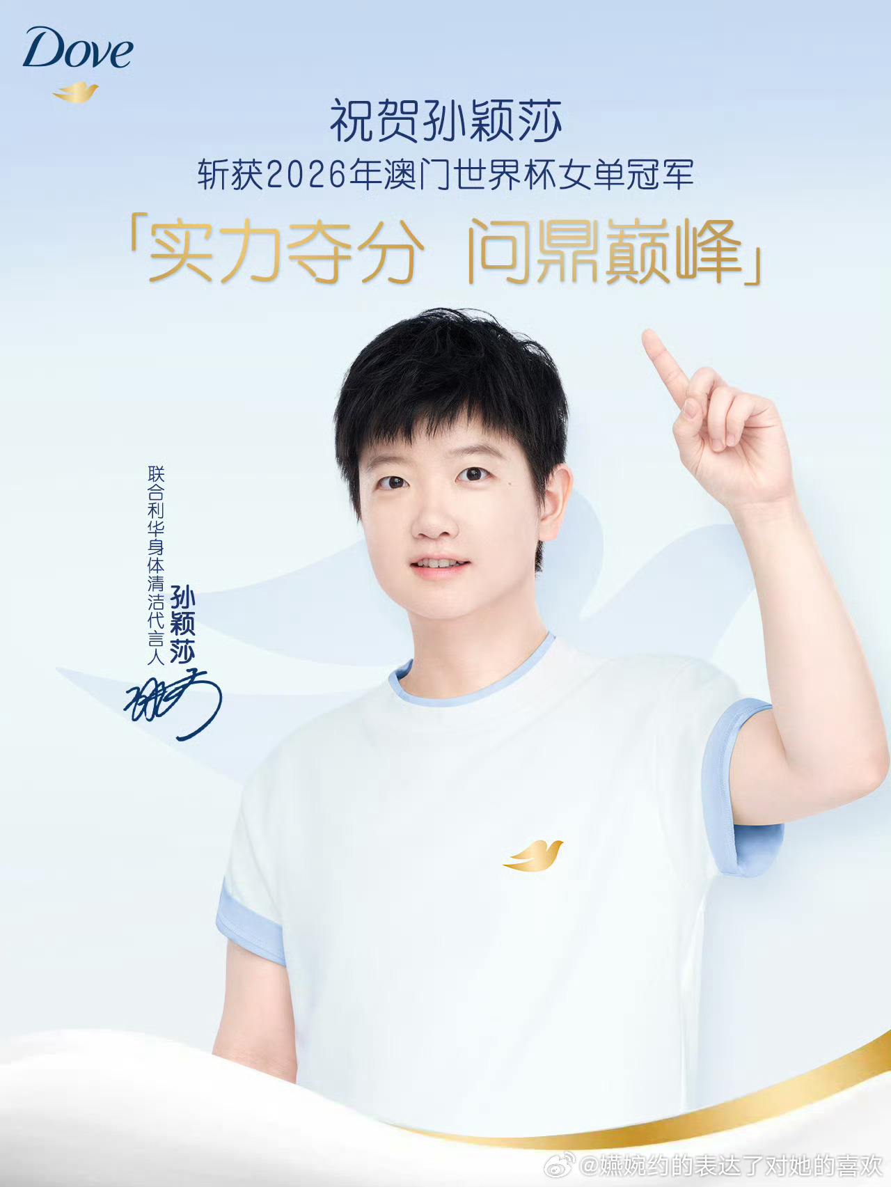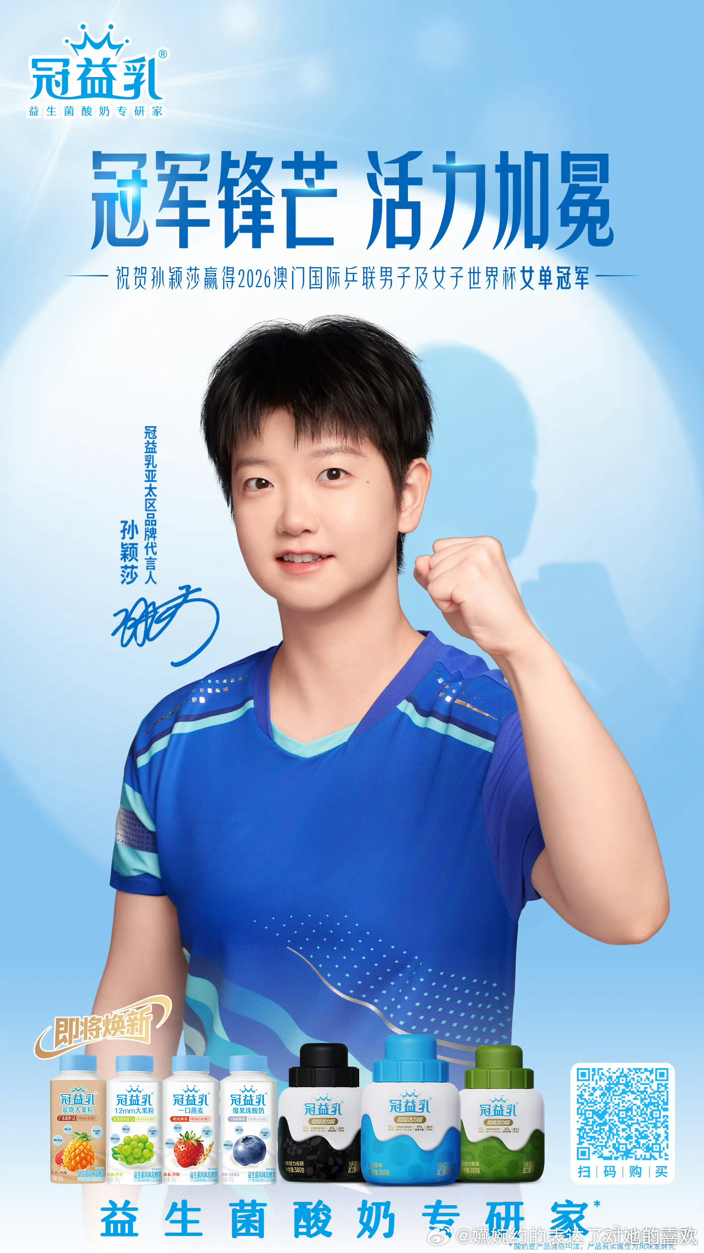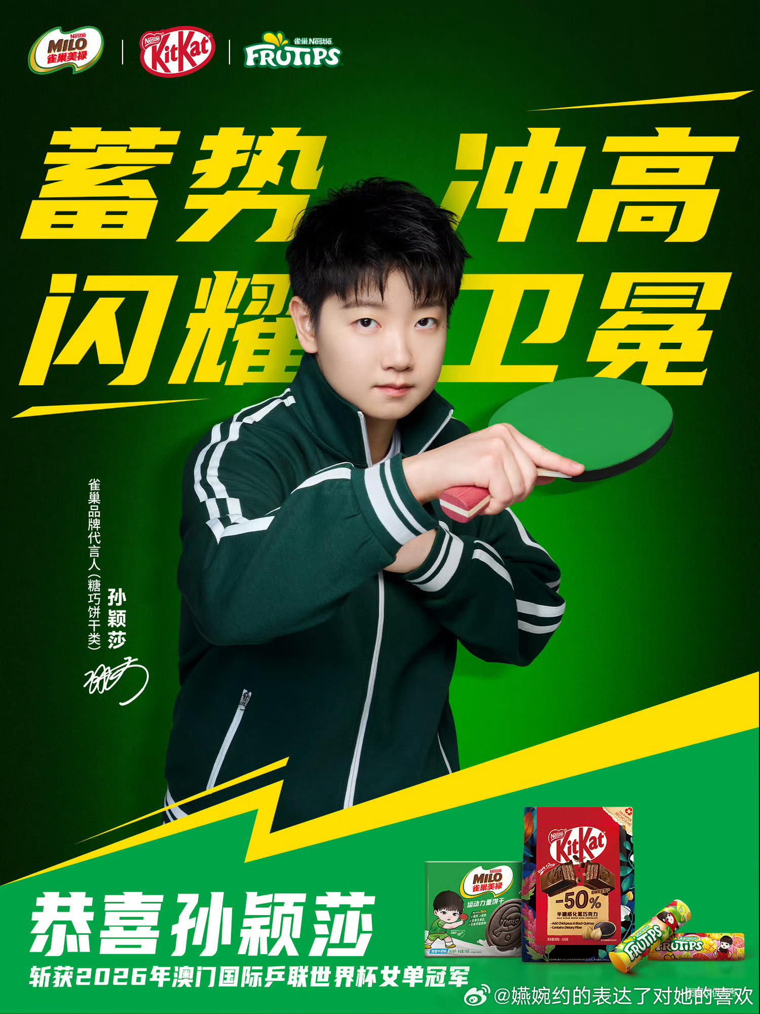 我家N个大代言送来的N张精美贺图,所有人都知道孙颖莎世界杯三连冠了