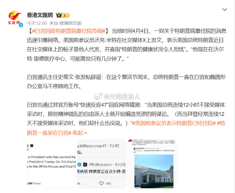 白宫回应特朗普病重住院传闻,热点观点 ,美炸毁2架执行救援故障运输机,伊媒称多名美军士兵在营救行动中身亡