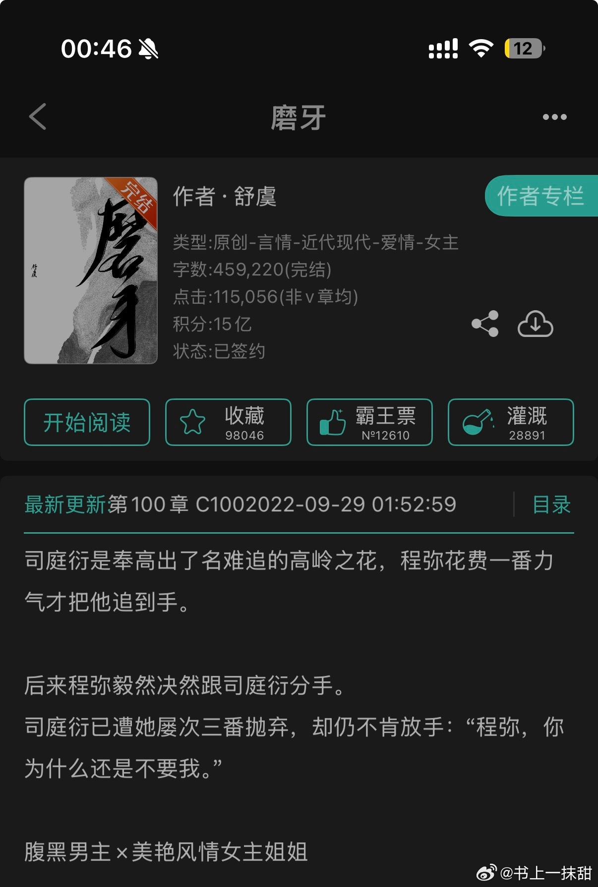 6️⃣《磨牙》——舒虞(完结):这本人设真的超带感吧!校园姐弟恋,风情万种勾人女主突然开始追男主,追到一半调转方向和别人谈了然后可想而知男主生气了嗯嗯…男鬼味就此流露…而且男主超级深情,俩人很小的时候相遇之后就一直喜欢女主…但就是拉扯隐忍的线有些长,后期有点狗血,大家自行选择品味!