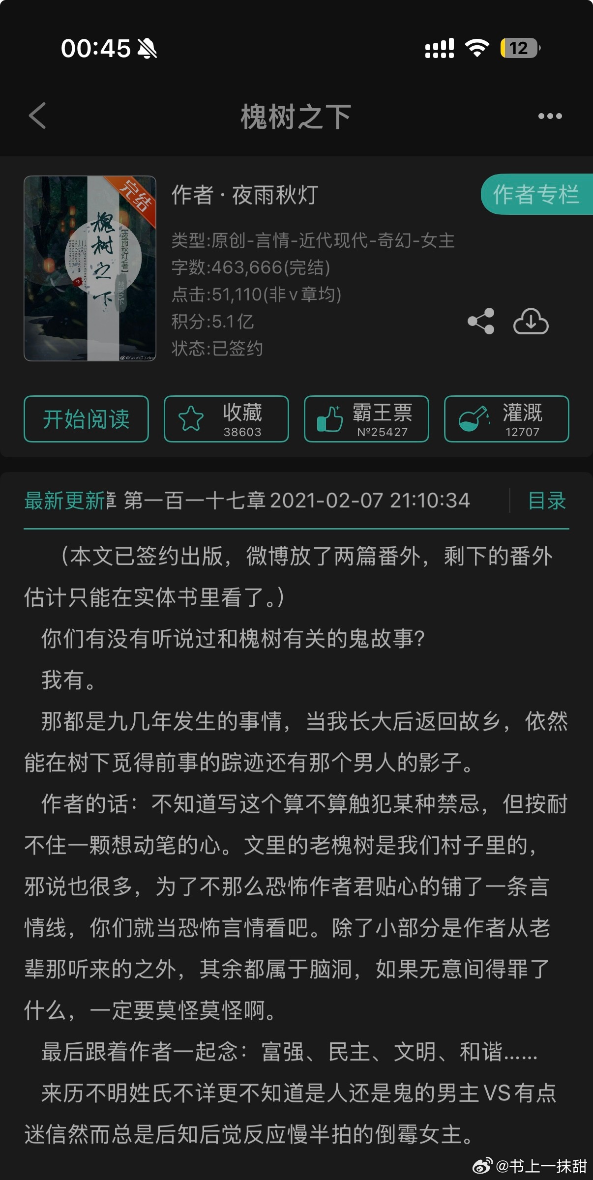 4️⃣《槐树之下》——夜雨秋灯(完结):这本是真的无代餐的灵异言情,作者借鉴了很多中式传统文化来写,前半部分真的很有中式恐怖那味了…胆小者勿入!!大家也找个阳气足的地方看bushi)后半部分前世今生的恨海情天味拉满了…暧昧拉扯的宿命感太绝了!男主阴森森地喊女主名字真的太带感了…越看越爽…