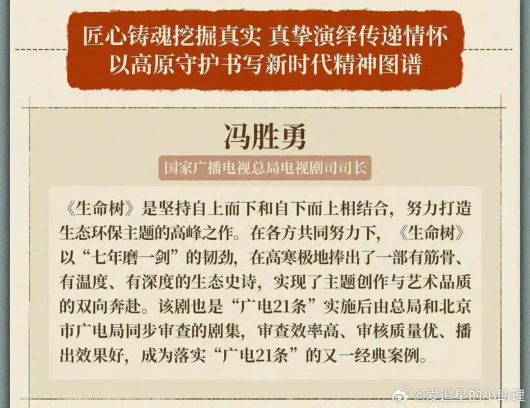26年中国电视产业大会,广电冯司长,重点表扬杨紫的生命树和国色芳华是行业标杆,什么水平?