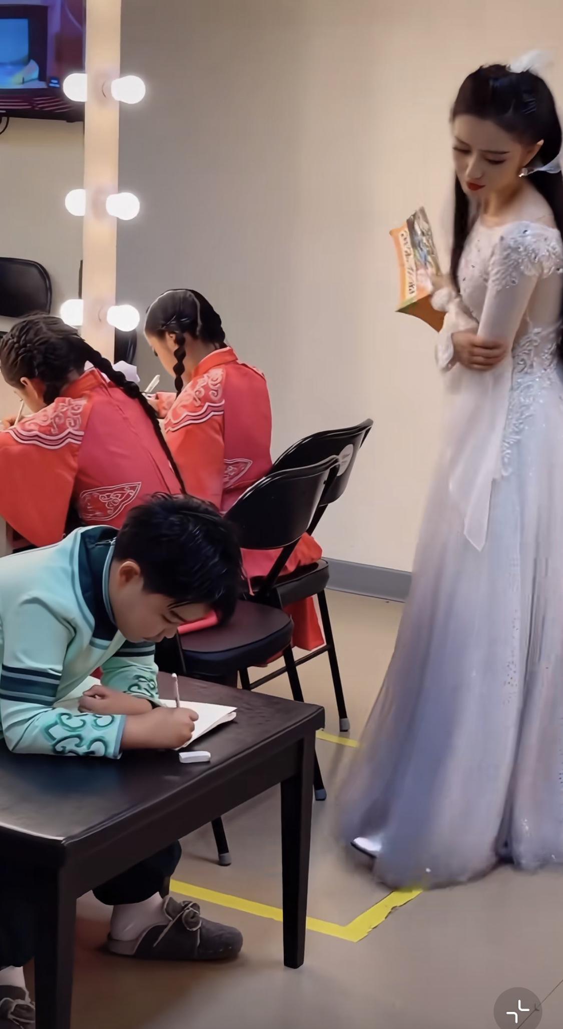 董璇偷看佟丽娅给儿子和小酒窝辅导作业。都在感叹女明星也要辅导作业啊…… 佟丽娅一下辅导三个孩子,确实挺厉害的。 董璇的女儿和佟丽娅的儿子是同班同学,两个孩子学习的内容都一样。小酒窝和佟丽娅同台演出,演出结束后。佟丽娅就在后台辅导孩子学习。 董璇 佟丽娅