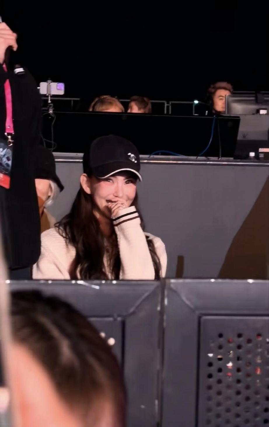 昆凌,第3场演唱会还是笑成那样! 4月5日,周杰伦在杭州的第3场演唱会举办,昆凌与周杰伦的母亲叶惠美一起坐在台下观看。 昆凌坐的是控台的位置,基本上是整个演唱会现场的最中间,格外引人关注,但她没有刻意去表现什么,就是很自然地展现出真实状态。 有粉丝拍到了昆凌,是原相机下,只见昆凌先是戴着帽子,笑得特别开心,后面把帽子摘了下来。 她随着台上周杰伦的歌声,左右摇摆身体打节奏,沉浸在歌声当中,并且始终面带微笑。 昆凌这么爱笑,连着三场都准时在台下陪伴周杰伦,说明二人的感情是非常好的,因此她才会笑成那样。