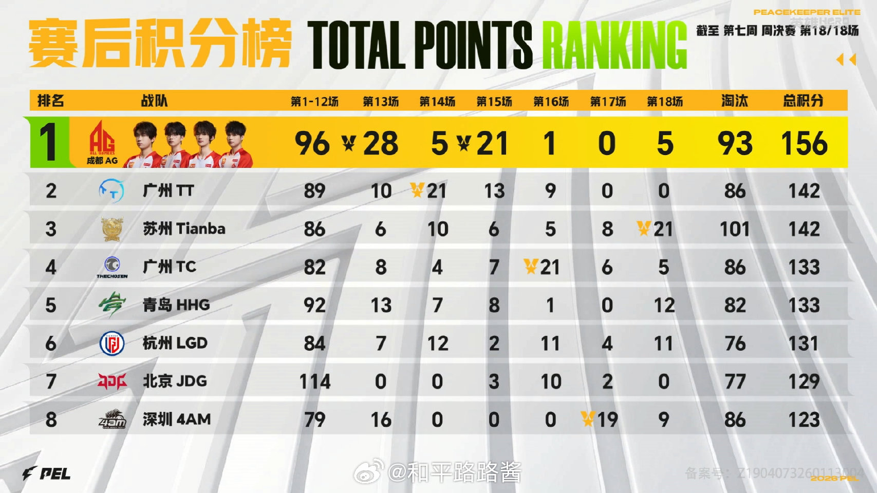 【2026 PEL 春季赛】Week7 Day4 第六场 AG七周五冠AG常规赛第一直通春决天霸青稚周决MVP