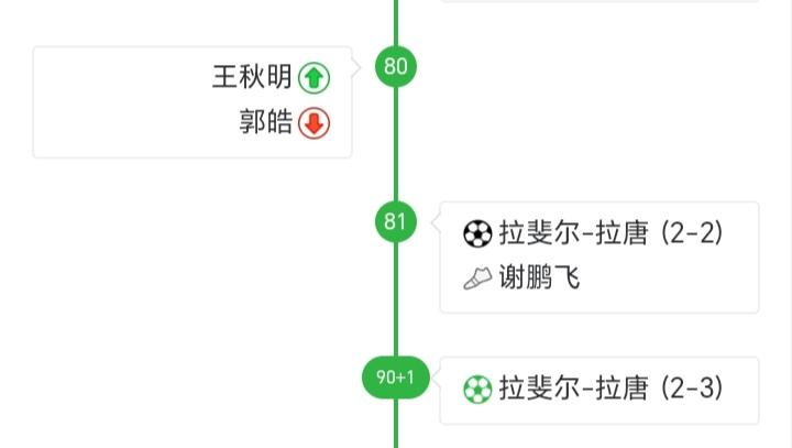 看一下这条时间线,于根伟战术大师的含金量还在上升,只是苦了王秋明。 故事还要从间歇期于根伟指导直播说起。当时就有天津球迷质疑为什么场场让王秋明首发,于指导的回答是王秋明冬训状态最好。这一场罕见的没让他首发,球队居然打破进球荒,还有望拿下首胜。 眼看比赛还有十分钟结束,这不坏事了吗?这不证明球迷是对的,自己错了吗?然后果断换下中场最重要的郭皓,换上王秋明,结果被申花闪电扳平,最后被逆转。 实话说这俩球跟王秋明也没什么关系,这可能就是玄学吧,可能场外考虑的太多,终究还是影响到了场内。