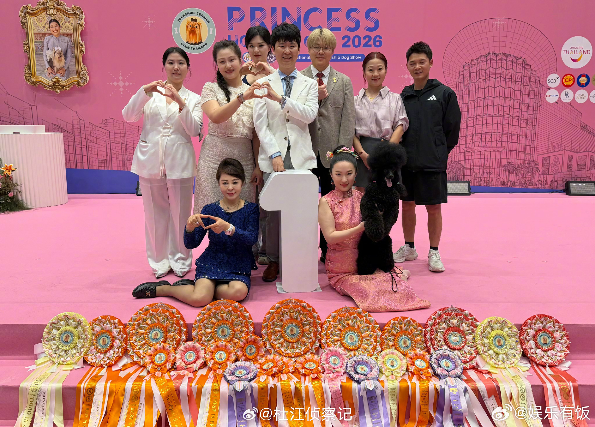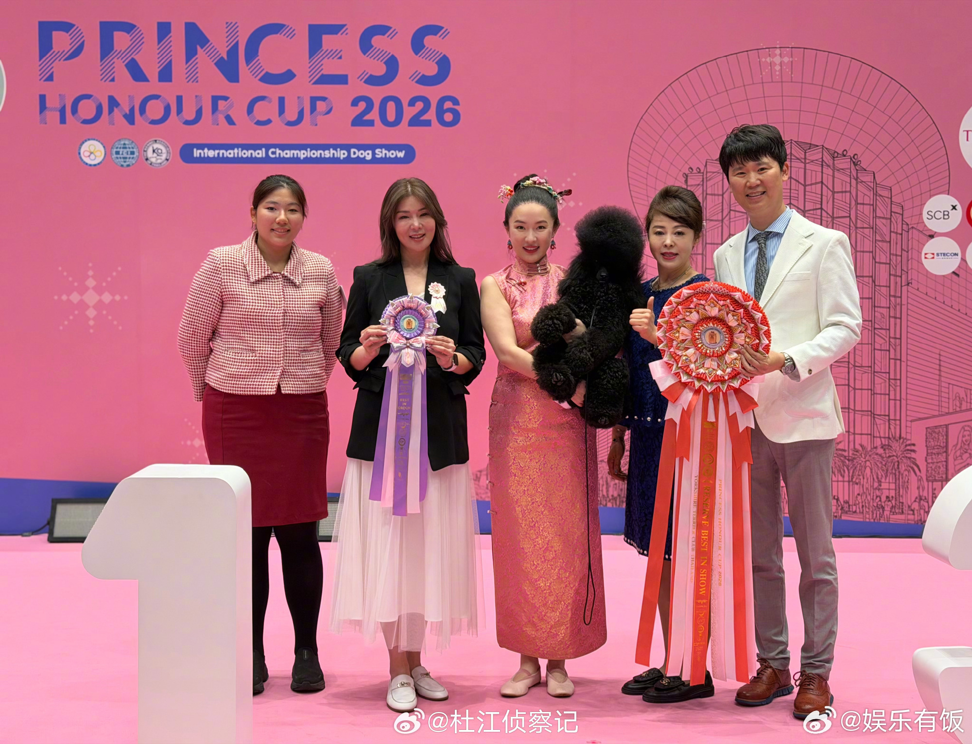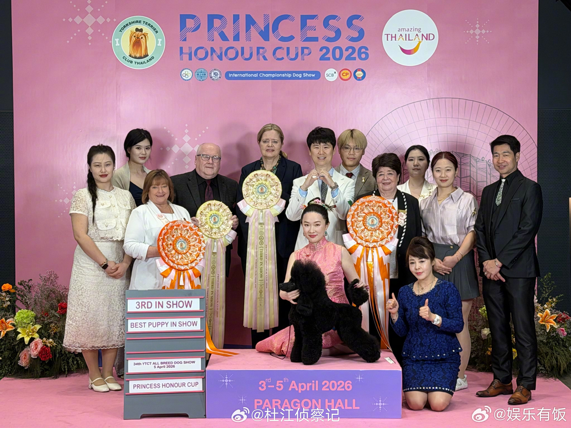 霍思燕泰国犬赛再夺冠 发文晒照恭喜携中型贵宾爱犬“霍蜜蜡”勇闯泰国,征战为期三天的泰国“公主杯”国际犬展,创下辉煌战绩,太厉害啦