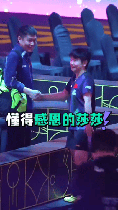 孙颖莎赛后去找coco握手,是一个懂得感恩的孩子。 coco害羞的笑了。 澳门世界杯莎莎4-1曼昱,夺得女单冠军, 同时也成为了世界杯历史上首个三冠王得主。 内采结束,莎莎走向了场边观赛席上的coco, 师徒两个都是害羞的人, coco不好意思的笑了, 莎莎也笑了, 每一次比赛,莎莎也都会感谢球迷粉丝, 无论是怎样的舆论,莎莎都坚定的感谢支持她,支持中国乒乓球队的人。 恭喜莎莎!