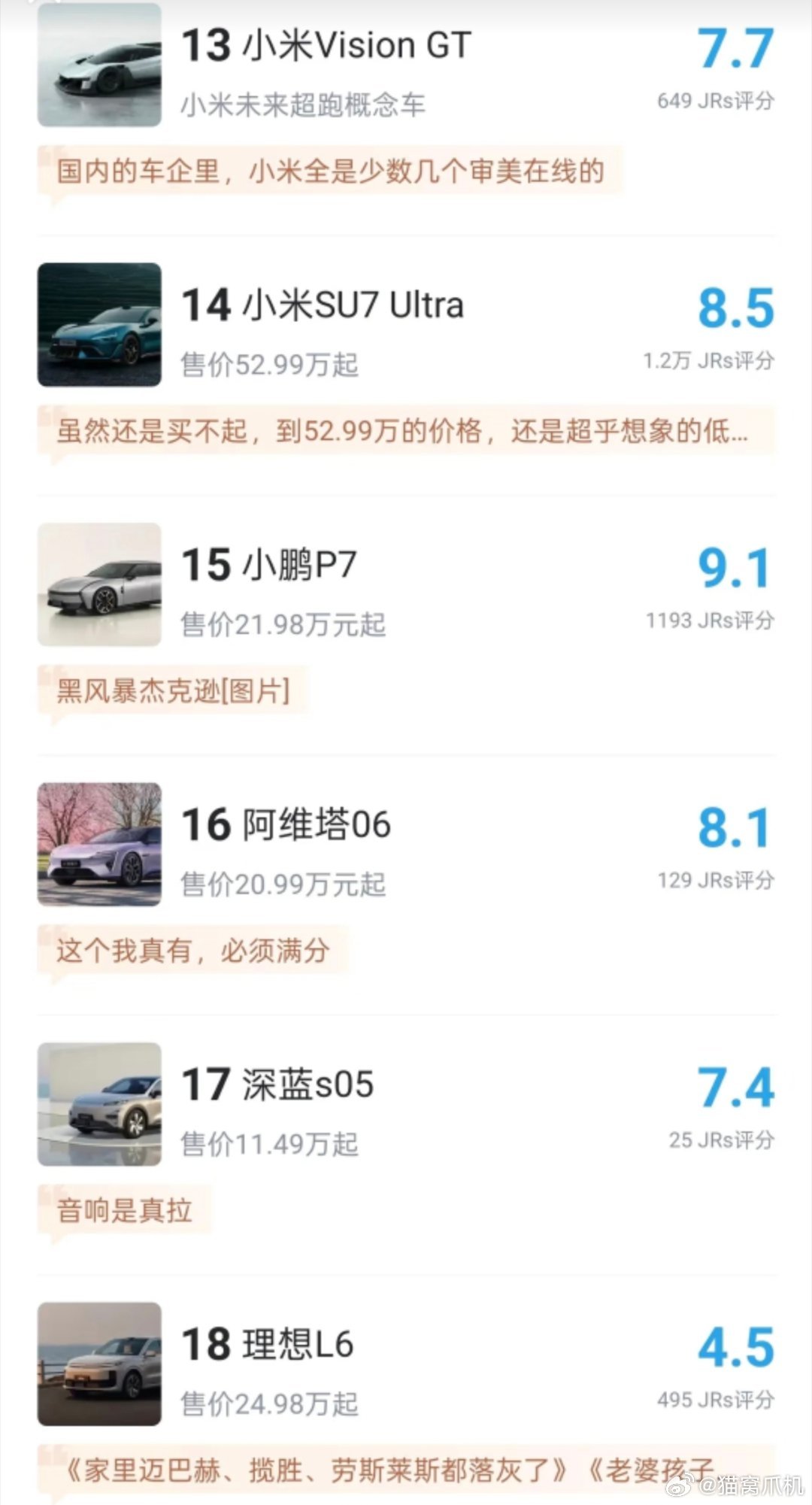 车门车型网络评分。