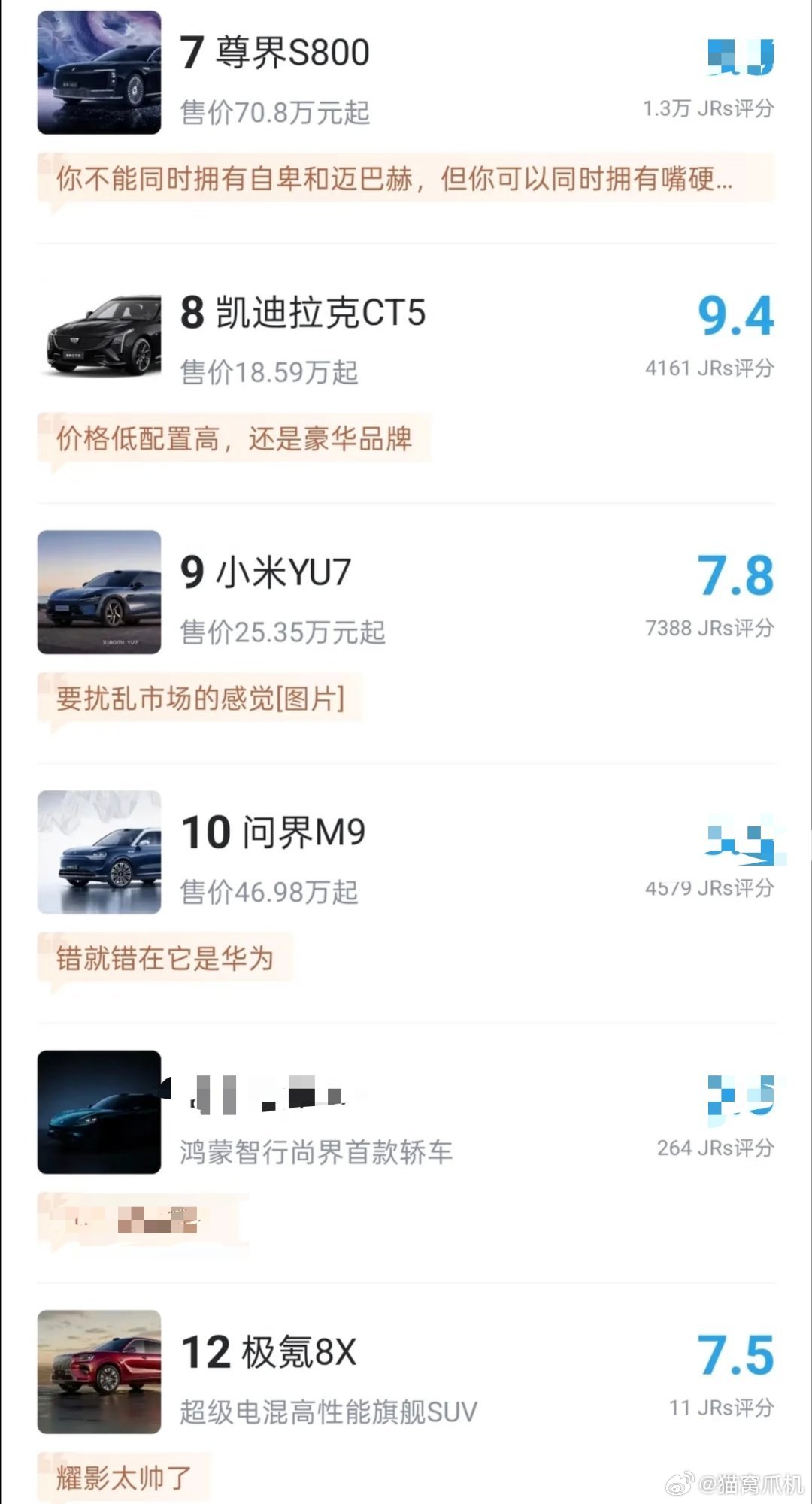 车门车型网络评分。“小心划错车”。