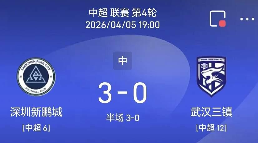 深圳新鹏程发威,韦斯利梅开二度,上半场连进3球,深圳新鹏程3比0领先武汉三镇,武汉三镇直接被打蒙了,半场3球落后,武汉三镇凶多吉少。 今晚的深圳新鹏程像换了一支球队一样,太猛了,开场才14分钟,韦斯利就率先头球破门,后面戴伟浚2个角球直接制造2球,角球直接助攻本科维奇头球破门,戴伟浚王者归来,深圳新鹏程上半场3比0完胜武汉三镇,拿下胜利大概率已经板上钉钉了,陈涛有两把刷子,深圳主场球迷大狂欢了。