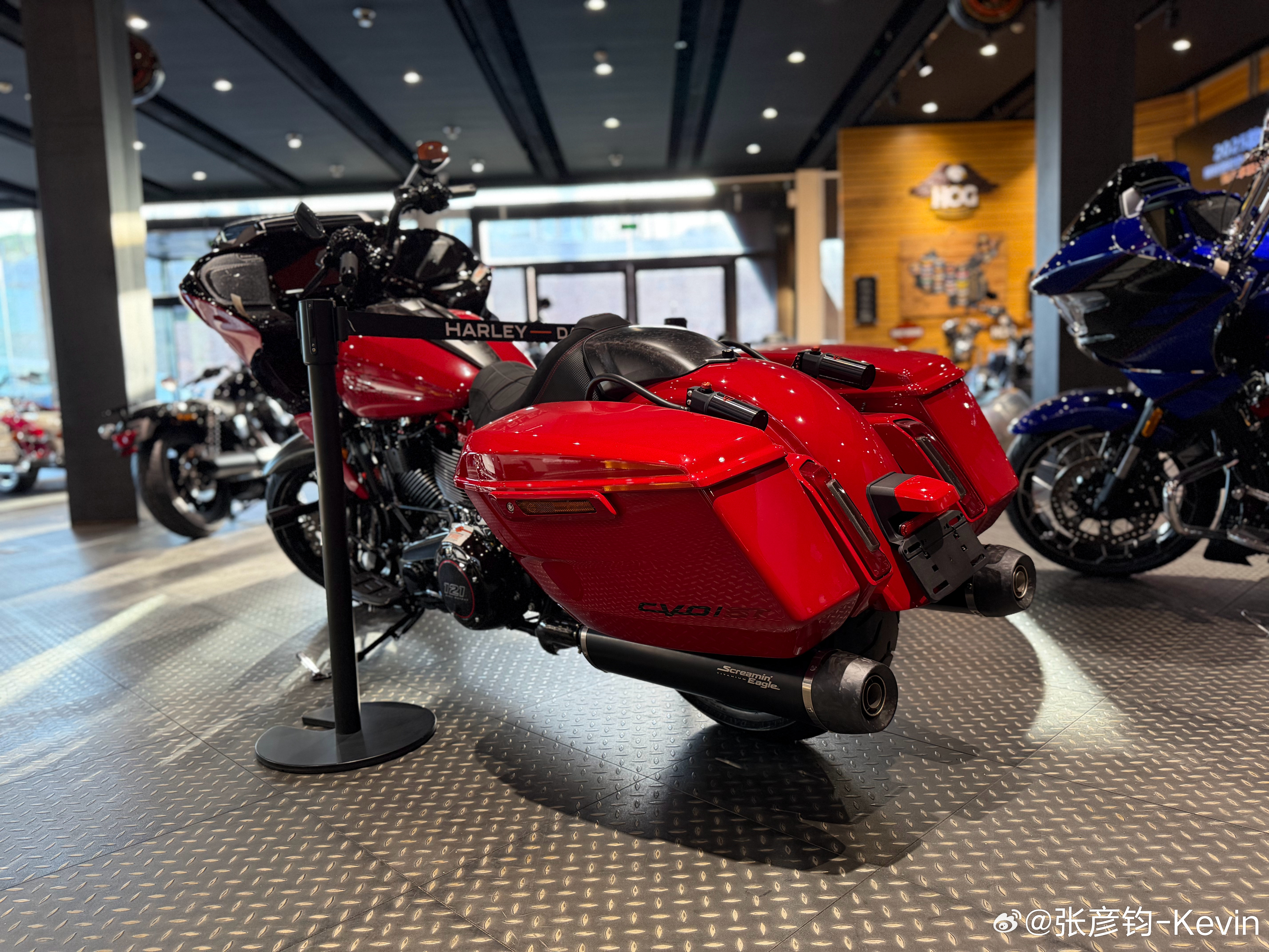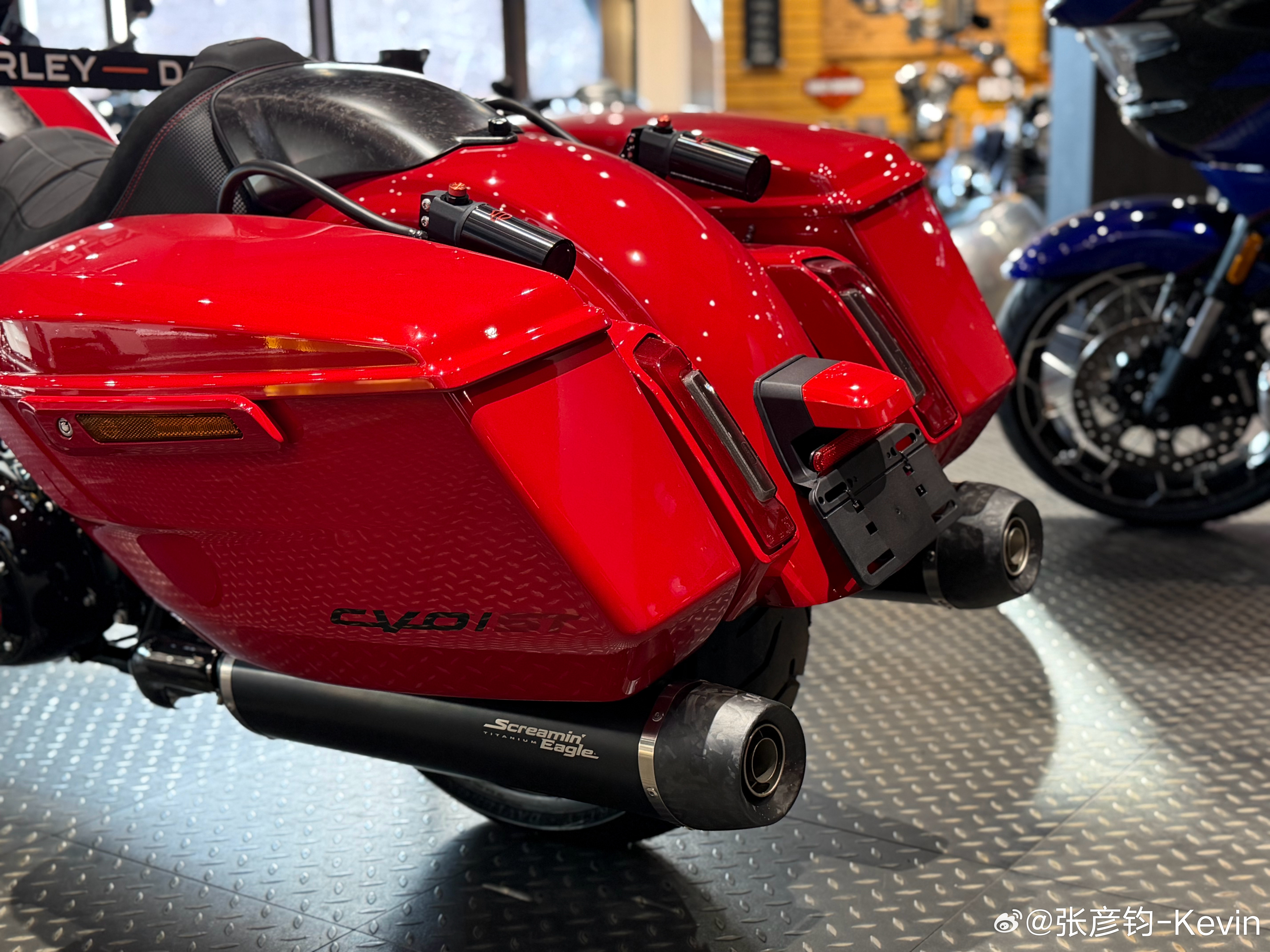 晚上路过,看到哈雷的公路滑翔CVO ST,王老师说的这一天好像来到了,看着好带劲,121的新机器,一身Screamin' Eagle件儿,据说还能上原厂二阶程序带质保,指导价52万,现在40多,带劲!